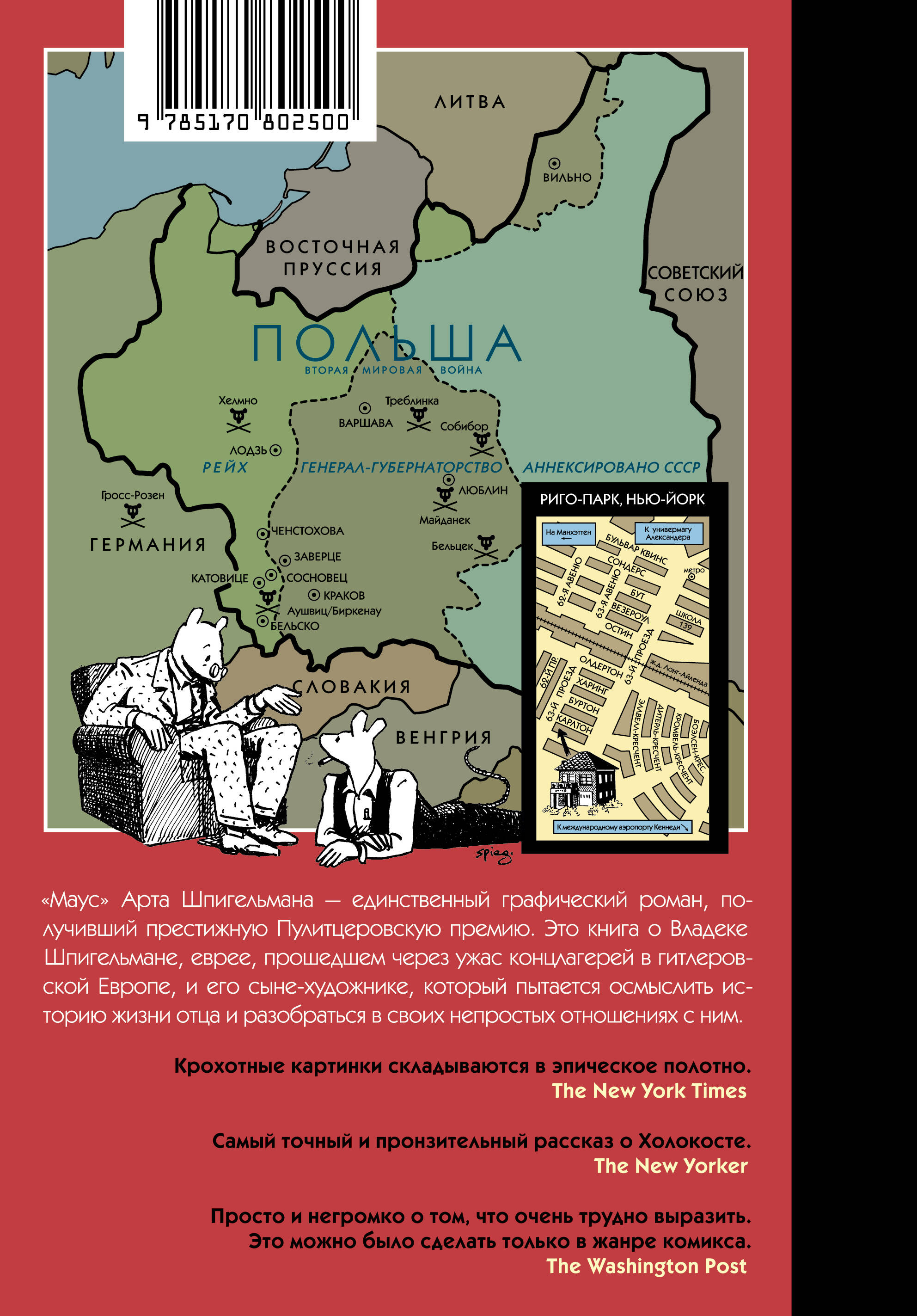 "Маус" Арта Шпигельмана - единственный графический роман, получивший престижную Пулитцеровскую премию. Автору удалось, казалось бы, невозможное - рассказать историю Холокоста в форме комикса. Владек Шпигельман, отец Арта, рассказывает сыну, как прошел через гетто, Освенцим и "марш смерти" на Дахау. Но "Маус" - это и глубоко личная история, его попытка разобраться в своих непростых отношениях с семьей. На стыке этих историй и рождается уникальный текст, который без упрощения и пафоса рассказывает об одной из самых чудовищных трагедий ХХ века.| Издательство | ИЗДАТЕЛЬСТВО "АСТ" |