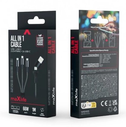 Maxlife ALLin1 66W USB / USB-C / Lightning / 2x USB-C кабель 1m