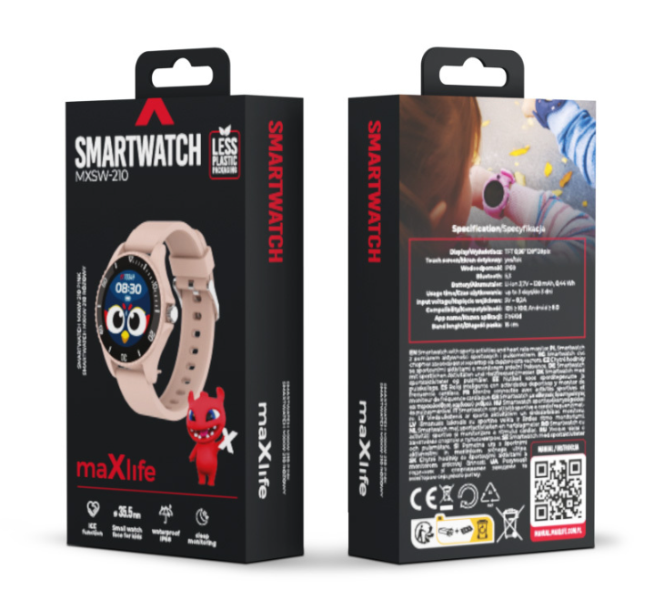 Умные часы MXSW-210 отличаются легким дизайном, идеально подходящим для маленьких запястий, и возможностью выбора одного из четырех циферблатов, что делает их не только практичным, но и стильным устройством для самых маленьких пользователей.
