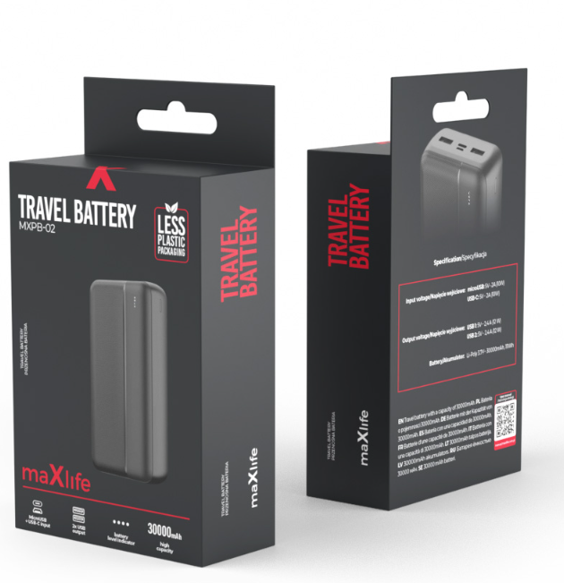 <p>Емкость аккумулятора: 30 000 mAh<br>Количество выходных портов: 2 <br>Тип входного порта: USB-C; microUSB<br>Тип выходного порта: 2x USB<br>В комплект входит: банк питания,кабель USB типа C, руководство по эксплуатации</p>