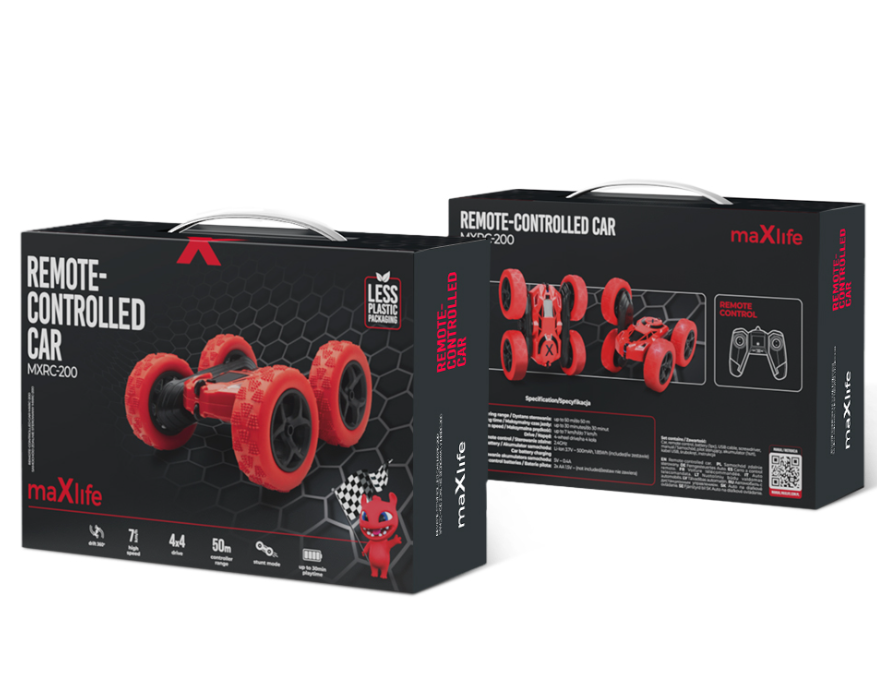 <p>Дистанционно управляемый автомобиль Maxlife MXRC-200 унесет пользователя в вихрь захватывающего веселья. Автомобиль оснащен четырьмя приводными колесами, которые оснащены резиновыми шинами с высокой тягой. Это позволяет автомобилю с легкостью преодолевать различные трассы и ландшафты, обеспечивая динамичное развлечение на любом типе грунта. Пульт дистанционного управления RC, входящий в комплект, используется для управления автомобилем. Он оснащен двумя ручками управления, каждая из которых отвечает за одну пару колес, что позволяет точно управлять движением автомобиля. Управление пультом дистанционного управления очень простое и интуитивно понятное. Автомобиль с дистанционным управлением может выполнять основные движения, такие как движение вперед, назад и повороты, что обеспечивает динамичную езду. Кроме того, он выполняет другие трюки - сальто, переводит колеса и совершает поворот на 360° вокруг собственной оси. Именно оператор несет ответственность за все показатели, которые будет выполнять автомобиль.</p>