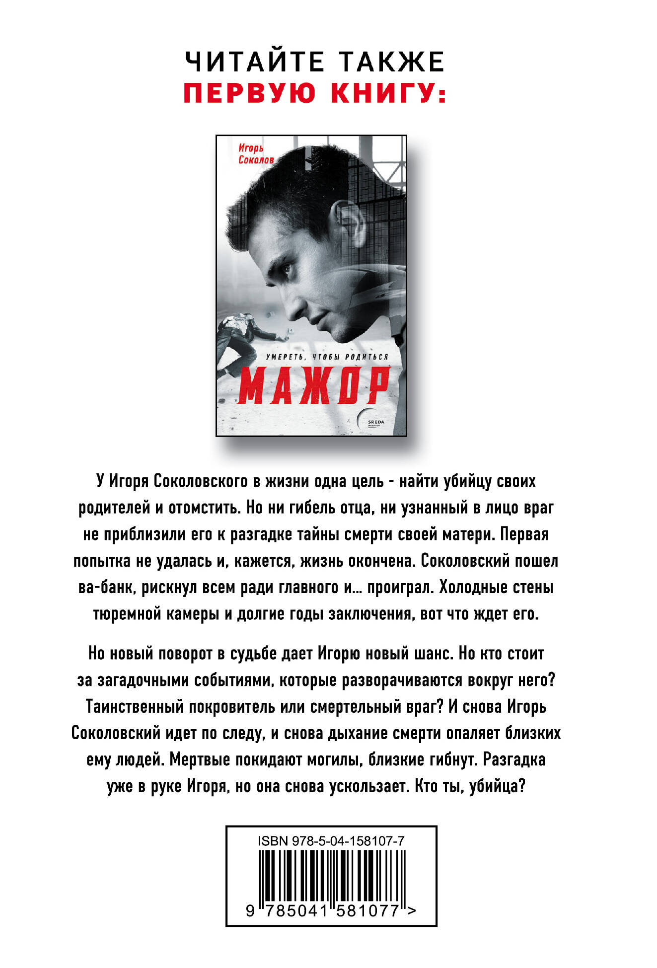 Сериал «Мажор» - один из популярнейших проектов Первого канала, также показанный на американской стриминговой платформе Netflix. Сериал посмотрели миллионы людей, а в 2017 году он получил премию «ТЭФИ». У Игоря Соколовского в жизни одна цель - найти убийцу своих родителей и отомстить. Но ни гибель отца, ни узнанный в лицо враг не приблизили его к разгадке тайны смерти его матери. Первая попытка не удалась, и, кажется, жизнь окончена. Соколовский пошел ва-банк, рискнул всем ради главного и… проиграл. Холодные стены тюремной камеры и долгие годы заключения - вот что ждет его. Новый поворот в судьбе дает Игорю шанс. Но кто стоит за загадочными событиями, которые разворачиваются вокруг него? Таинственный покровитель или смертельный враг? И снова Игорь Соколовский идет по следу, и снова дыхание смерти опаляет близких ему людей. Мертвые покидают могилы, близкие гибнут. Разгадка уже в руках Игоря, но она снова ускользает. Кто ты, убийца?| Издательство | ООО "Издательство "Эксмо" |