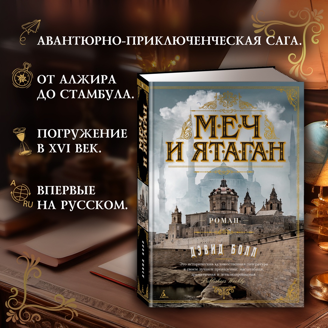 Мальта, XVI век. Мальчика Нико похищают работорговцы и увозят в Северную Африку. У его сестры Марии две мечты. Во-первых, сбежать с острова, где никто и пальцем не шевельнул, чтобы спасти ее брата. Однако вторую ее мечту, кажется, осуществить еще сложнее: в обществе, где в школы допускаются только дворянские сыновья, девочка из простой семьи хочет научиться читать. А в Париже растет граф Кристиан де Врис. С рождения он принят в орден госпитальеров, но сердце мальчика отдано медицине… Через несколько лет всем троим предстоит сыграть свою роль в Великой осаде Мальты, когда на крошечном острове столкнутся цивилизации и решится судьба Европы. От невольничьих рынков Алжира и султанского сераля в Стамбуле до шумных набережных Парижа и рыцарского форта на Мальте: «Меч и ятаган» - одна из лучших авантюрно-приключенческих саг, роман о вечной борьбе религий и культур Востока и Запада. Впервые на русском!| Издательство | Азбука |