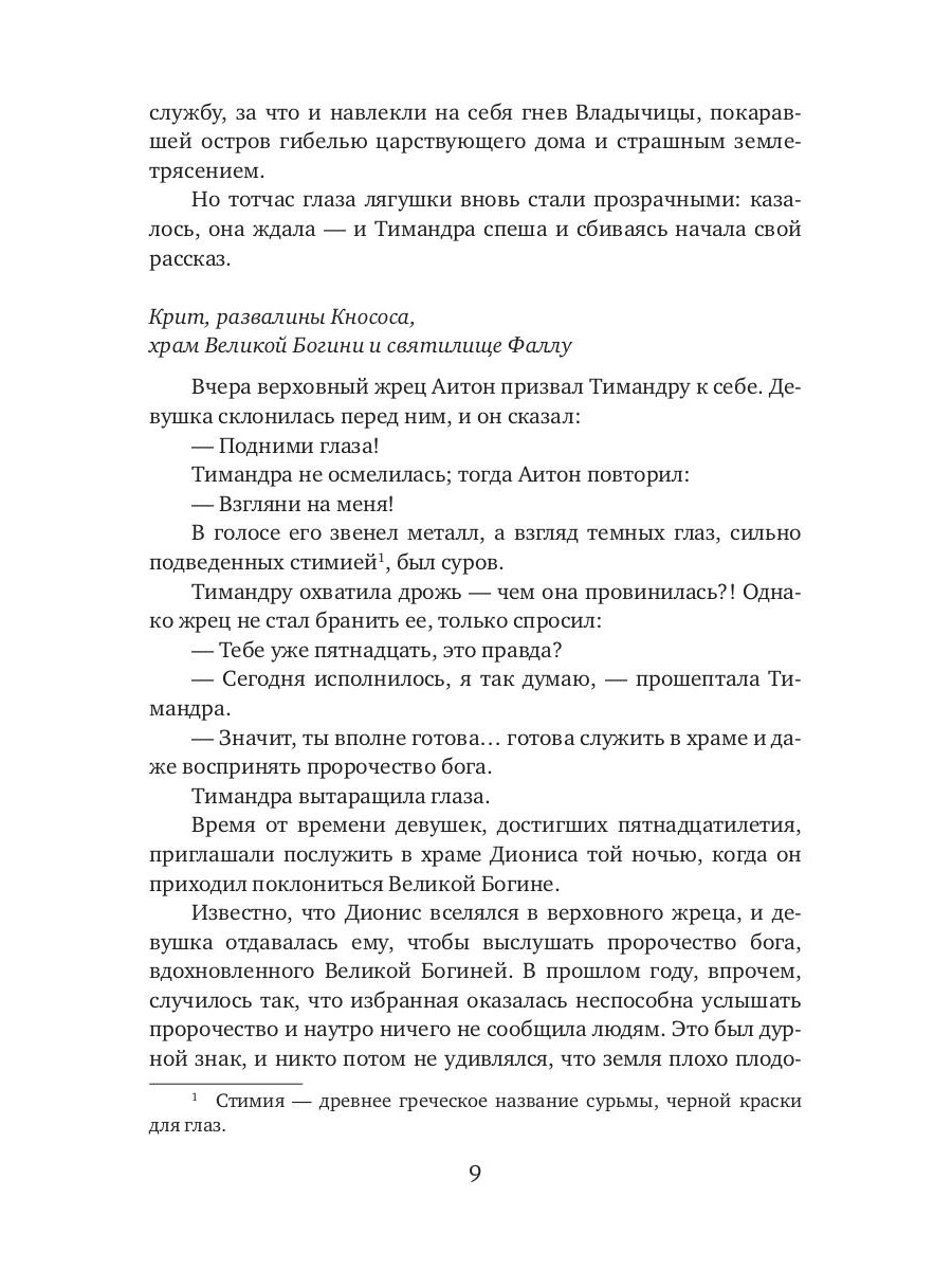 Отец Тимандры погиб в безднах знаменитого критского лабиринта, где он искал сокровища древних царей. Девушка должна бежать с Крита. Мореходы продают ее в портовый бордель. Идомену - так теперь называли Тимандру - спас красавец Алкивиад. На застежке его плаща отчеканено изображение Эроса с мечом - и этот меч смертельной любовью поразил Идомену-Тимандру. Отныне что бы она ни делала: встречалась с мужчинами, помогала грабителям обирать простодушных горожан, училась в школе в школе гетер, изобличала лесбиянок-убийц, вела бурную жизнь куртизанки, - она мечтала лишь о новой встрече с Алкивиадом. Вот только встретила она его брата-близнеца Хореса… Кого же любит Тимандра? И кому из двух братьев станет верной спутницей до последнего дня его жизни?| Издательство | Т8 RUGRAM |