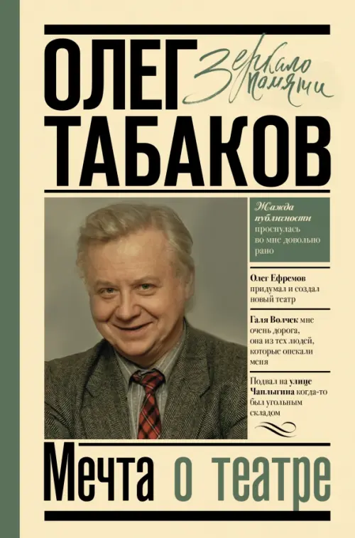 «Мечта о театре» - это увлекательный, полный интереснейших подробностей рассказ знаменитого актера о своем саратовском детстве, о переезде в Москву и учебе в Школе-студии МХАТ, о рождении театра «Современник», о жизни МХАТа, о возникновении сначала театральной студии, а затем и театра на улице Чаплыгина, так называемой «Табакерки». Много интересного узнает читатель о тех, с кем дружил и работал О. Табаков, а среди них Г. Волчек, О. Ефремов, Е. Евстигнеев, И. Кваша, Л. Толмачева, Т. Доронина…
