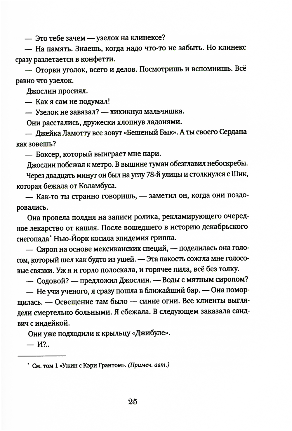 Второй том романа «Мечтатели Бродвея» - и вновь погружение в дивный Нью-Йорк! Город, казавшийся мечтой. Город, обещавший сказку. Город, встречи с которым ждешь - ровно как и с героями полюбившегося романа. Джослин оставил родную Францию, чтобы найти себя здесь - на Бродвее, конечно, в самом сердце музыкальной жизни. Только что ему было семнадцать, и каждый новый день дарил надежду - но теперь, на пороге совершеннолетия, Джослин чувствует нечто иное. Что это - разочарование? Крушение планов? Падение с небес на землю? Вовсе нет: на смену прежним мечтам приходят новые, а с ними вместе - опыт. Во второй части «Мечтателей» действие разгоняется и кружится в том же сумасшедшем ритме, но эта музыка на фоне - уже не сладкие рождественские баллады, а прохладный джаз. Чарующий - и такой реальный. Как и Джослин, девушки из пансиона «Джибуле» взрослеют и шаг за шагом идут к своим истинным «Я». Танцовщица Манхэттен подбирается к разгадке давней тайны, продавщица Хэдли с успехом копается в прошлом, манекенщица Шик ищет выгодную партию, а актриса Пейдж - Того-Самого-Единственного. Нью-Йорк конца 1940-х годов всем им поможет - правда, совсем не так, они того ждут. Французская писательница Малика Ферджух (родилась в 1957 году) - автор десятков популярных романов для детей и подростков, лауреат престижной премии «Сорсьер» (Prix Sorcieres). Раньше она изучала историю кино, и атмосферу голливудской классики легко почувствовать на страницах ее книг: трилогия «Мечтатели Бродвея» динамична, как «Поющие под дождем», непредсказуема, как «Бульвар Сансет», и оптимистична, как «В джазе только девушки». Прекрасный перевод Нины Хотинской сохранил на русском языке ритм и стиль оригинала. Время с этой книгой пролетит быстрее, чем танец Фреда Астера!