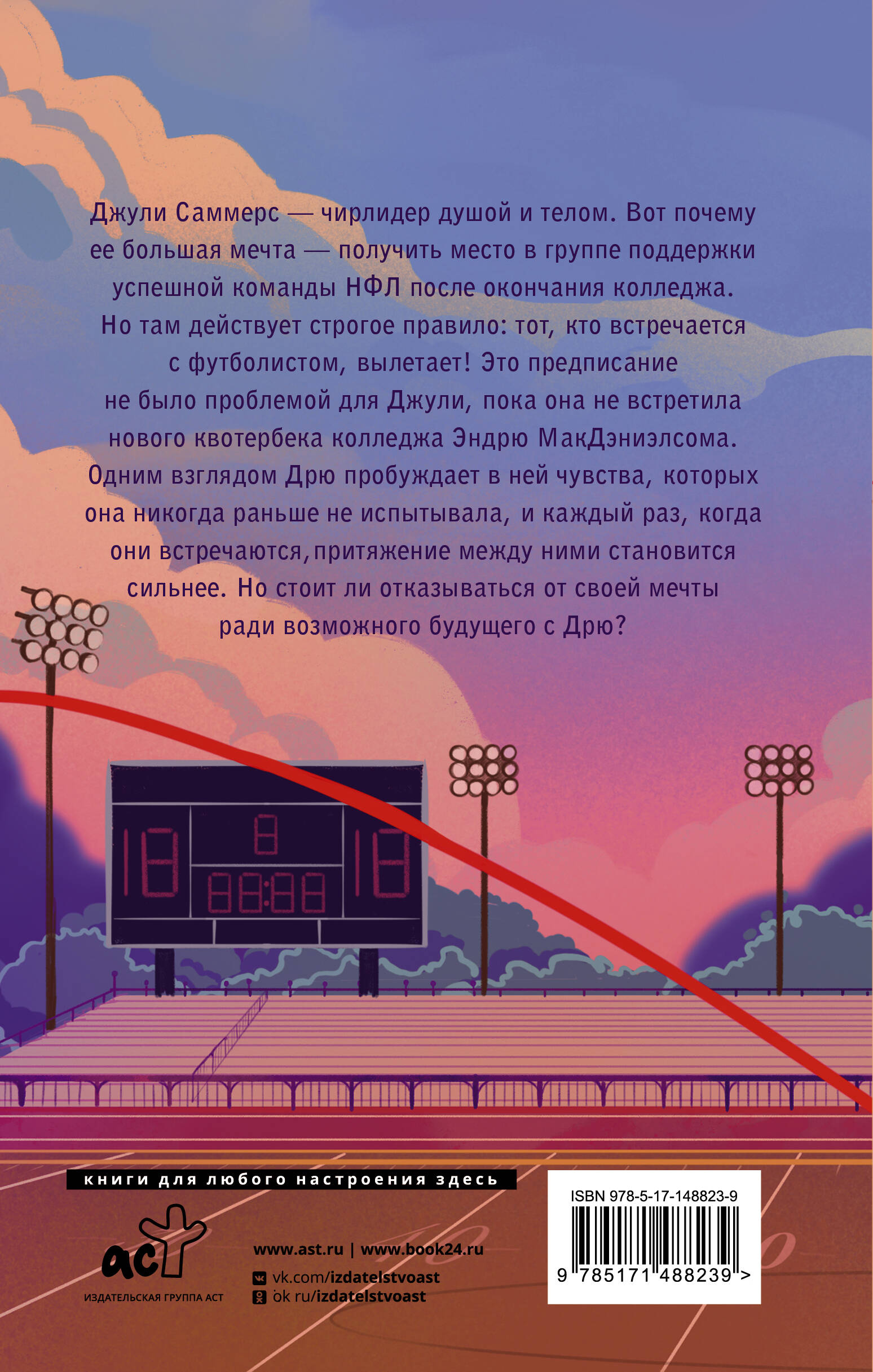 - Мировой бестселлер в жанре new adult-романтика. - Для всех фанатов спортивного студенческого романа в духе книг Сарины Боуэн, Солы Рэйн и Кэнди Стайнер! Что важнее: любовь или будущее? Так легко предпочесть будущее в теории, но на деле - гораздо сложнее. Чирлидершу Джули Саммерс ждет блестящая карьера: после колледжа у нее есть все шансы попасть в группу поддержки команды Национальной футбольной лиги. Единственное условие - никаких отношений с футболистами, и ей удается успешно его выполнять. До недавнего времени. В колледж приходит новый футболист - квотербек Дрю, при виде которого в животе у Джули начинают порхать бабочки. Но разве отношения, даже с самым милым парнем на свете, стоят карьеры? Джули придется сделать непростой выбор.