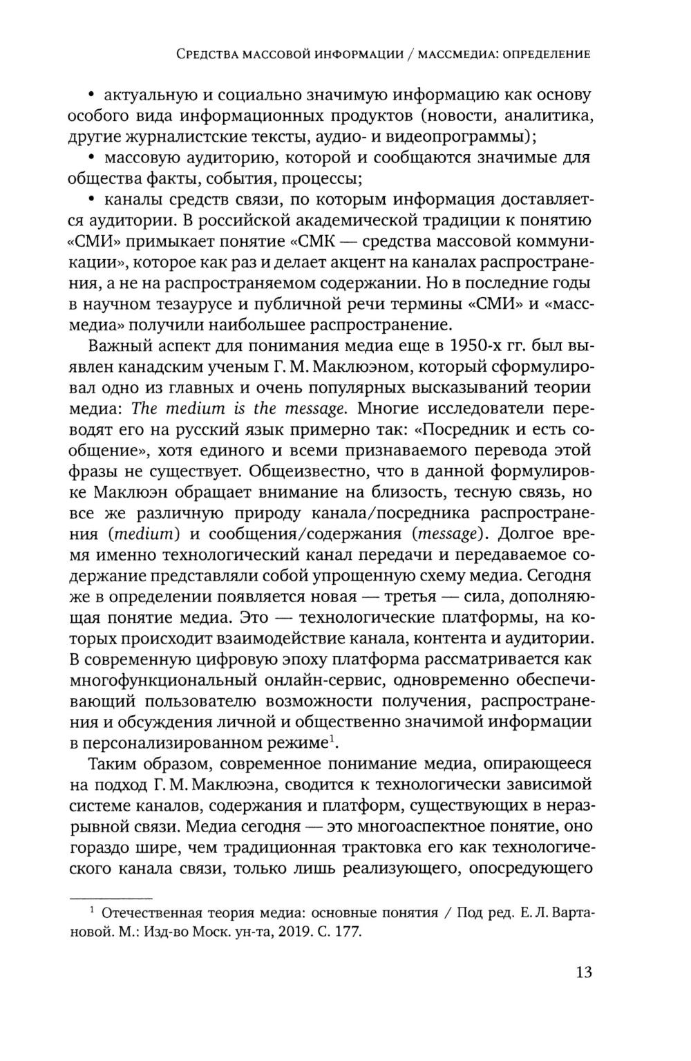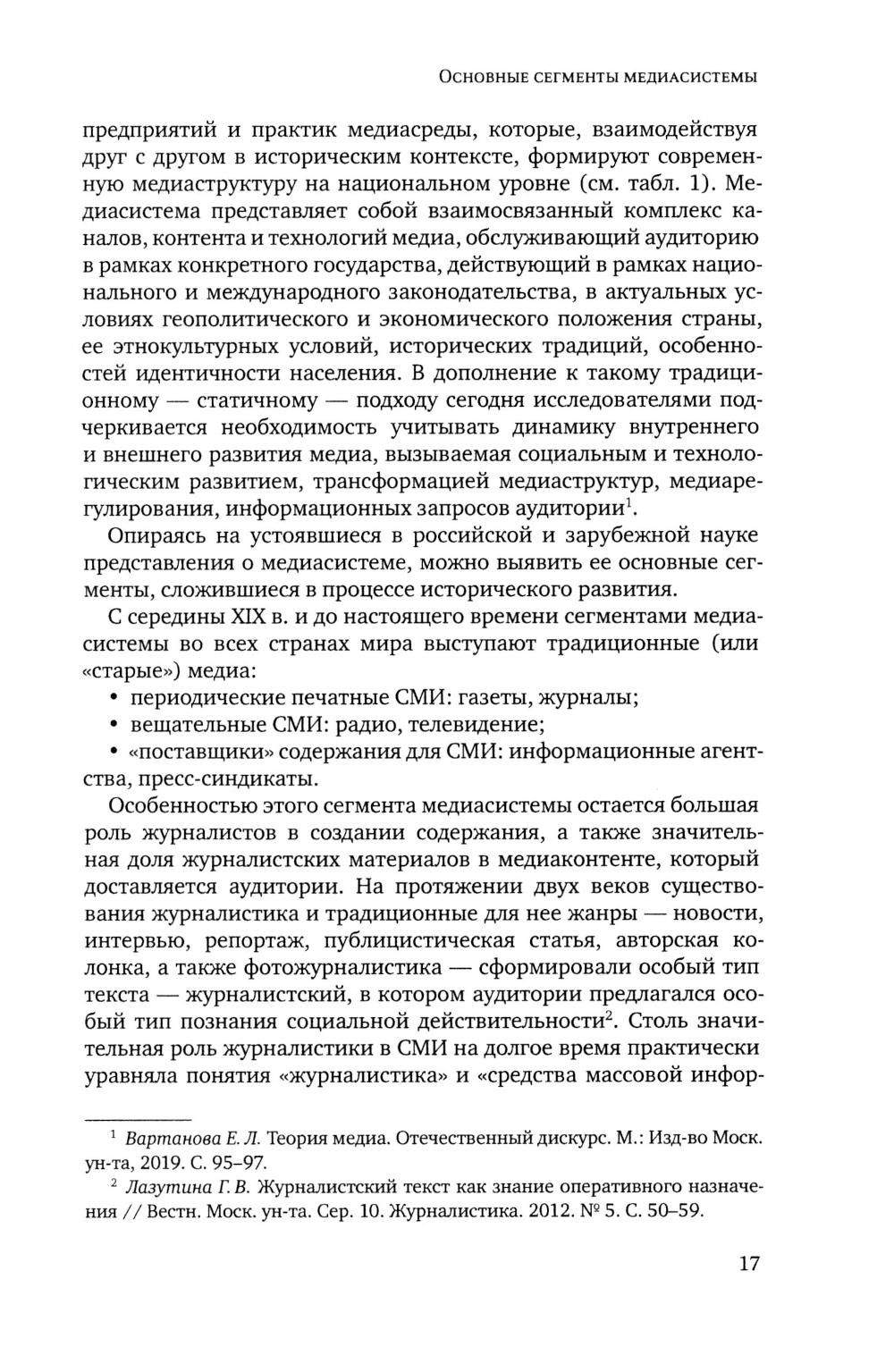 Учебное издание, стабильно выпускаемое с 2015 года, рассматривает общие теоретические вопросы классификации и индикации медиасистем, исторические этапы развития и формирования отечественной медиасистемы; характеризует правовое поле, в котором она функционирует. В книге рассматриваются различные сегменты медиасистемы России: печатная пресса, телевидение, радио, онлайн-СМИ, социальные медиа, информационные агентства, киноиндустрия, рек лама и связи с общественностью. Анализируются технологические, экономические, организационно-структурные и содержательные аспекты каждого сегмента. Особое внимание уделяется аудитории СМИ. Учебник содержит большой объем статистичес кого материала. Для преподавателей и студентов факультетов журналистики, исследователей, работников СМИ.| Издательство | Изд. Моск.университета |