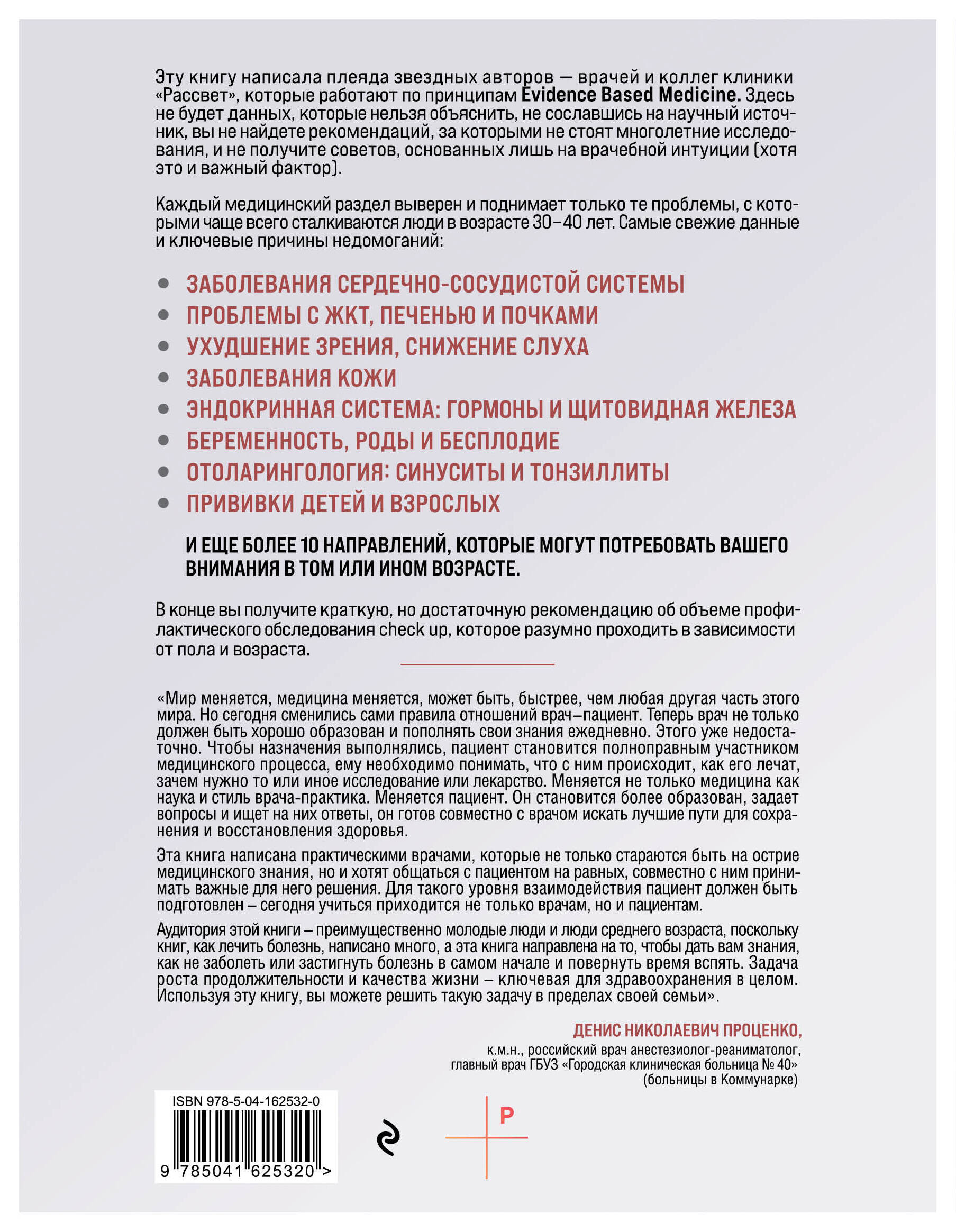 Эта книга задумывалась авторами - звездами отечественной доказательной медицины - как путеводитель по основным заболеваниям, которые могут настичь современного активного молодого человека. Того, который не привык полагаться только на одно мнение, который желает держать свое здоровье под контролем и ставит целью войти в зрелый и пожилой возраст сильным, здоровым физически и без когнитивных нарушений. Именно поэтому издание включает в себя такие разделы, как: - пульмонология, - эндокринология, - терапия, - кардиология, - неврология. - гепатология, - ревматология, - гинекология и урология, - дерматология. - аллергология-иммунология, - ортопедия. Вы не только ознакомитесь с основными симптомами наиболее частых заболеваний, но и сможете понять, на основании чего врач назначает тот или иной препарат, какие смежные проблемы со здоровьем могут возникнуть и что думает наука по этому поводу. Отдельный раздел посвящен прививкам детей и взрослых - только самая последняя проверенная информация, которую можно применить для взвешенного принятия решения.| Издательство | ООО "Издательство "Эксмо" |