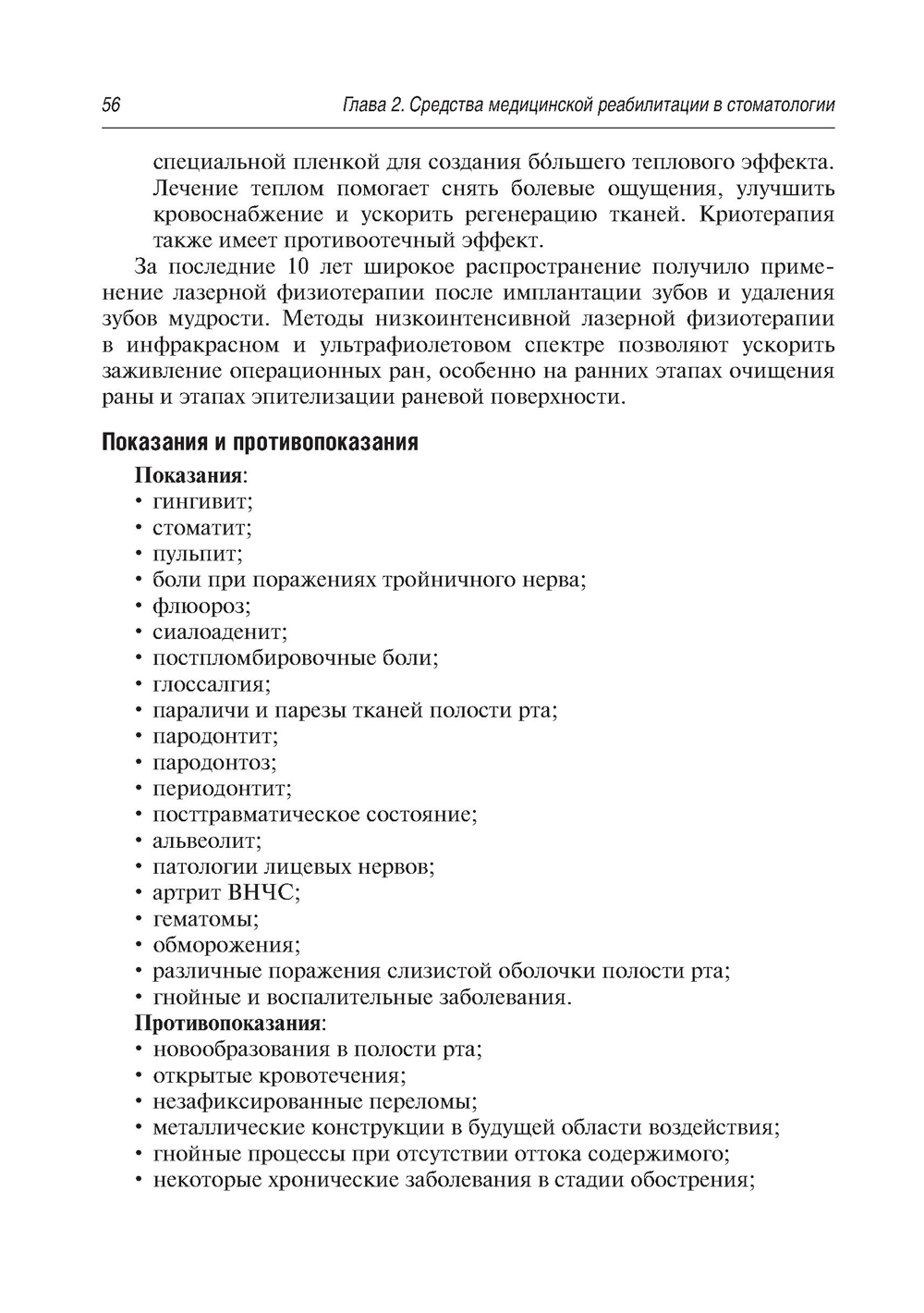 В руководстве с современных научных позиций представлено клинико-физио-логическое обоснование применения различных средств реабилитации в комплексном лечении заболеваний и травм челюстно-лицевой области. Освещены задачи и содержание реабилитационных программ на этапах лечения. Основу книги составляют современные программы медицинской реабилитации больных с использованием двигательного режима, различных средств лечебной физической культуры и видов массажа, мануальной и рефлексотерапии, физических факторов и психотерапии, Bowen Therapy, PNF в стоматологии, кинезиотейпирования, механотерапии (стоматологические тренажеры). Издание предназначено стоматологам, физио- и мануальным терапевтам, психотерапевтам, специалистам по лечебной физической культуре, а также студентам медицинских вузов, обучающимся по специальности «Стоматология» по дисциплине «Медицинская реабилитация».| Издательство | ГЭОТАР-Медиа |