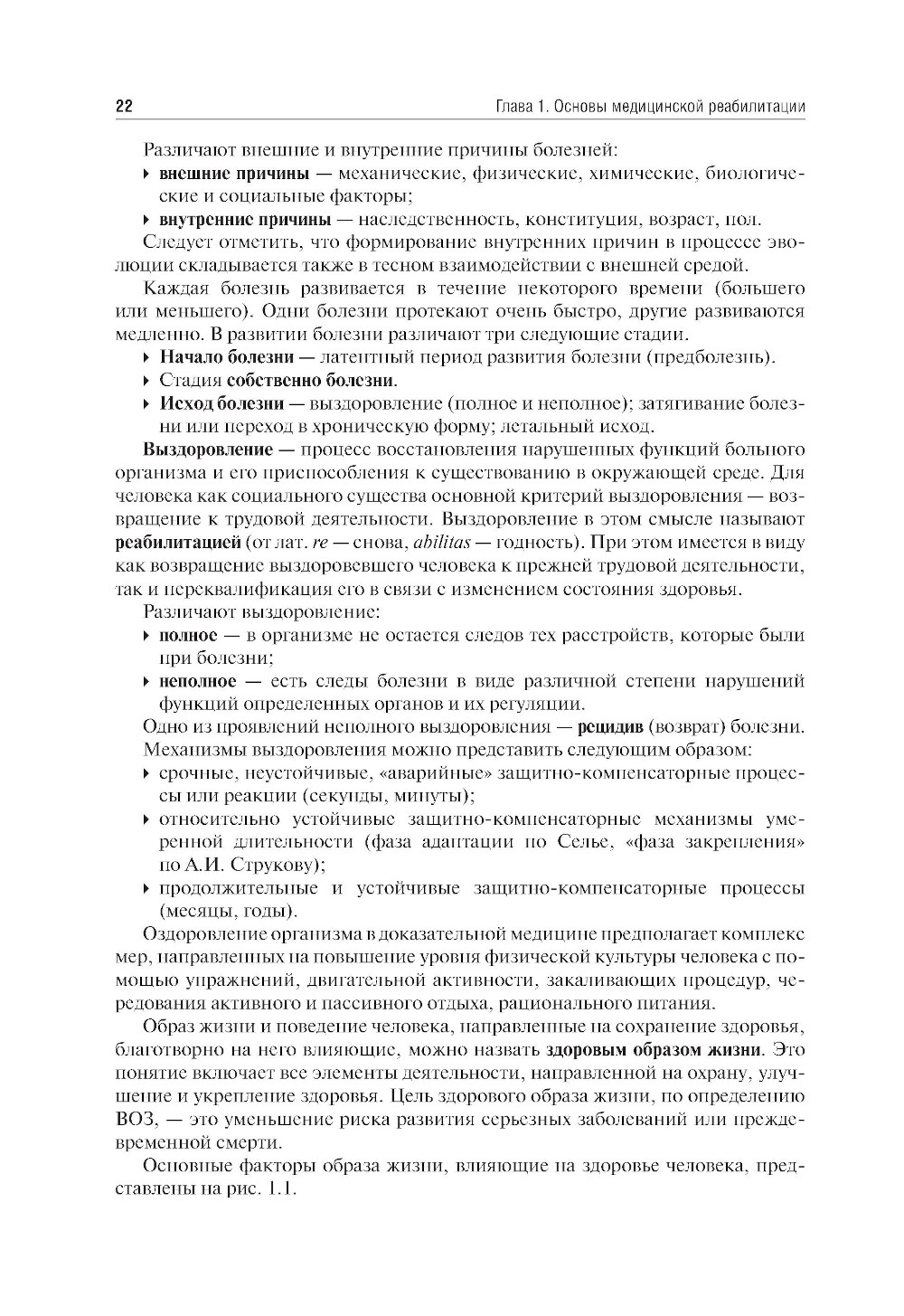 В учебнике рассмотрены вопросы реабилитации больных с заболеваниями сердечно-сосудистой, дыхательной, центральной и периферической нервной систем, органов пищеварения, заболеваниями и повреждениями опорно-двигательного аппарата, нарушениями обмена веществ, инфекционными заболеваниями, включая реабилитацию пациентов, перенесших COVID-19, а также вопросы применения реабилитационных технологий в акушерстве и гинекологии, педиатрии. Приведены клинико-физиологическое обоснование использования методов и средств медицинской реабилитации, основы медико-социальной реабилитации инвалидов. Изложены особенности врачебного контроля и нутритивной поддержки в медицинской реабилитации. Формирование реабилитационных программ отражено с учетом назначения двигательного режима, лечебной физической культуры, массажа, физиотерапии, мануальной терапии, рефлексотерапии, психотерапии и рационального питания. Усвоению изучаемого материала способствуют иллюстрации, схемы, таблицы, представленные в каждой главе. Учебник предназначен студентам учреждений высшего профессионального образования, обучающимся по специальностям "Лечебное дело" и "Педиатрия" по дисциплине "Медицинская реабилитология", может быть полезен клиническим ординаторам, специалистам в области медицинской реабилитации и врачам смежных специальностей.| Издательство | ГЭОТАР-Медиа |
