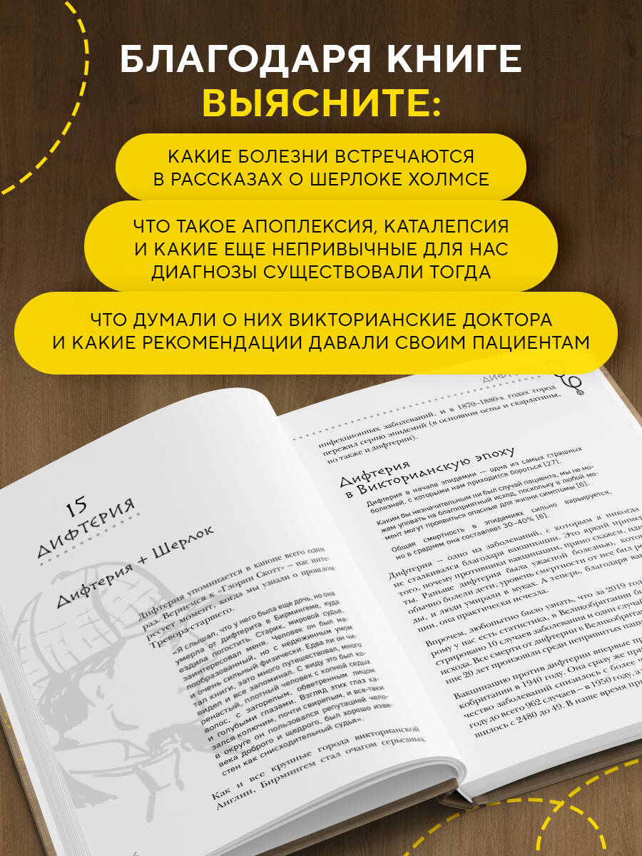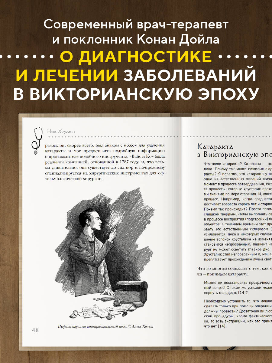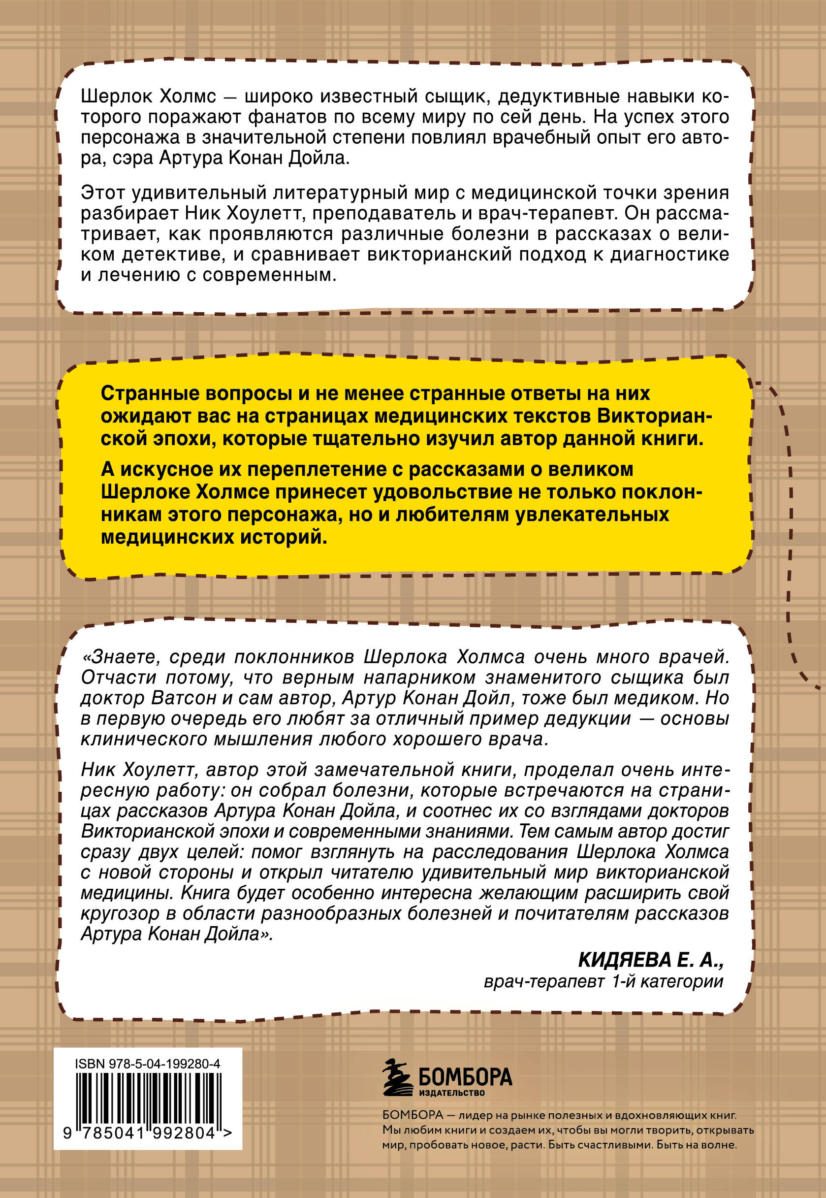 Ангина, астма, депрессия - довольно распространенные в современном мире болезни. А что насчет ихтиоза, апоплексии или люмбаго? Со всеми этими заболеваниями сталкивался не кто иной, как всемирно известный и всеми любимый детектив Шерлок Холмс. При написании великих произведений Сэр Артур Конан Дойл использовал свой реальный врачебный опыт, который он передал обитателю квартиры на Бейкер-стрит. А Ник Хоулетт, врач-терапевт, выросший на рассказах о великом сыщике и вдохновленный карьерой известного писателя, смог составить обширный список из 50 недугов, упомянутых в произведениях английского писателя. В чем отличие викторианской медицины от современной? Какие заболевания исчезли практически полностью, а каких не существовало и вовсе? Как Холмсу удавалось точно ставить диагноз по внешнему виду собеседника? Ник Хоулетт изучил медицинские тексты 19-го века, которые помогли дать ответ на эти и многие другие вопросы как поклонников Шерлока Холмса, так и просто любителей истории медицины.| Издательство | ООО "Издательство "Эксмо" |