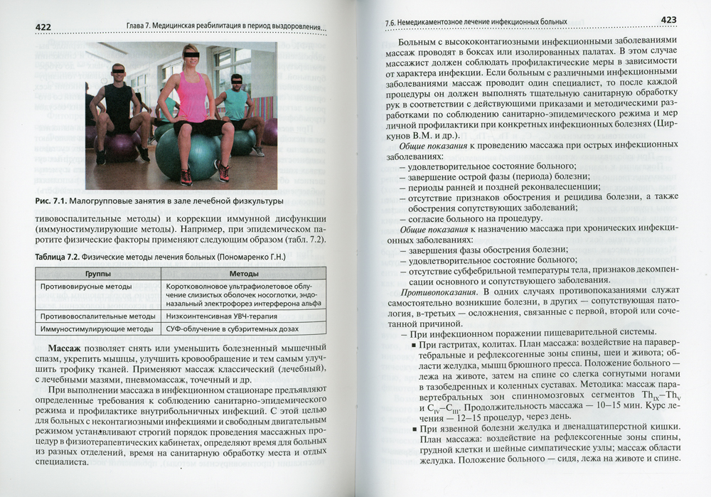 В учебном пособии с современных научных позиций рассмотрены вопросы реабилитации больных с заболеваниями и повреждениями различных органов и систем. Достаточно подробно представлено клинико-физиологическое обоснование применения средств реабилитации в комплексном лечении больных и инвалидов. Основу книги составляют современные принципы назначения различных средств медицинской реабилитации (программы реабилитации) с использованием двигательного режима, различных методов лечебно-физической культуры и массажа, мануальной и физиотерапии, психотерапии, эрготерапии, иппотерапии, кинезиотейпирования и т.д. Широко освещены и представлены в программах реабилитации методики, получившие наибольшее распространение при различных заболеваниях и повреждениях центральной и периферической нервной системы. Рассмотрены частные методики применения средств реабилитации при болезнях сердечно-сосудистой системы, органов дыхания, а также при заболеваниях и повреждениях костно-мышечной системы, обмена веществ и метаболических заболеваниях. Каждая глава включает описание клинической симптоматики и диагностики основного заболевания (повреждения), что позволяет индивидуализировать программы реабилитации. Издание предназначено студентам медицинских училищ и колледжей, обучающимся по специальности 31.02.01 «Лечебное дело».| Издательство | ГЭОТАР-Медиа |
