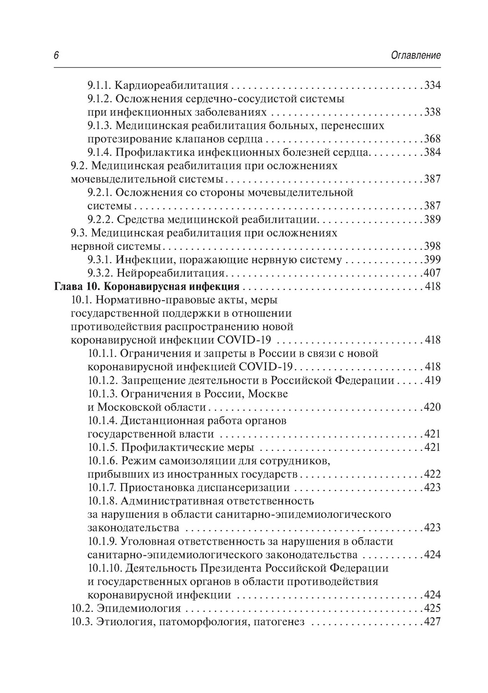 Настоящее руководство разработано на основании анализа отечественного и международного клинического опыта по медицинской реабилитации больных, перенесших инфекционные болезни. Приведена классификация инфекционных болезней, описаны типичные клинические проявления, критерии диагностики, основные принципы и схемы лечения с уровнями доказательности. Освещены особенности ведения разных групп больных, даны алгоритмы медикаментозного лечения отдельных нозологических форм. Представлены основные средства медицинской реабилитации (лечебная физкультура, физические факторы, питание, психокоррекция, различные виды массажа) и алгоритм их назначения на этапах восстановительного лечения. Определены показания и противопоказания к их применению. Отдельная глава посвящена коронавирусной инфекции COVID-19, описаны клиническая картина, методы диагностики, тактика лечения и реабилитации. В главе «Вирусные инфекции и спорт» впервые рассмотрены причины заболеваемости спортсменов, профилактика и лечение инфекционных заболеваний, сроки, когда следует приступать к тренировкам или занятиям оздоровительной физкультурой. Руководство предназначено врачам-инфекционистам, физиотерапевтам, специалистам по лечебной физической культуре и медицинской реабилитации, студентам старших курсов медицинских вузов, клиническим ординаторам и аспирантам, а также слушателям факультетов повышения квалификации медицинских вузов и колледжей.| Издательство | ГЭОТАР-Медиа |