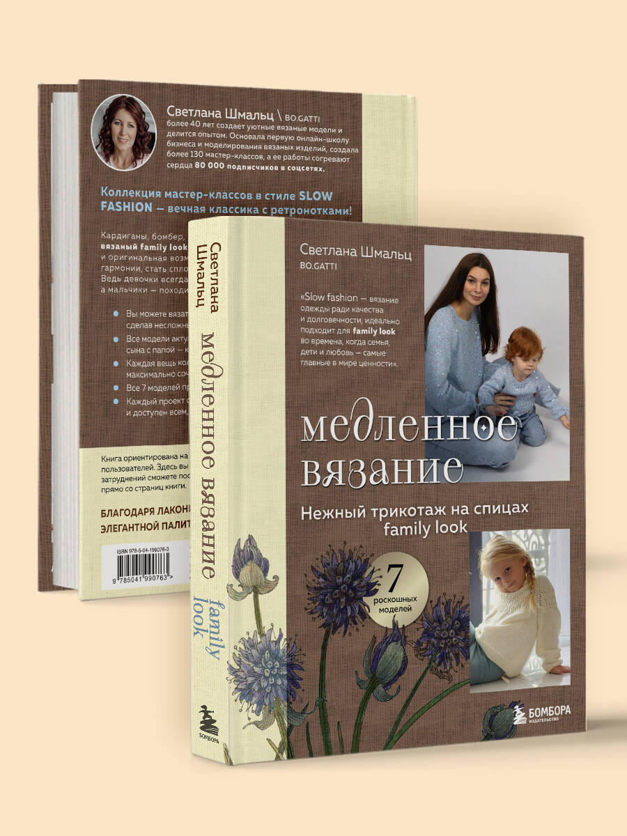Уникальная коллекция мастер-классов в стиле SLOW FASHION - вечная классика с ретро-нотками, от замечательного мастера Светланы Шмальц, известной в Сети как непревзойденный эксперт вязаной семейной моды. Все девочки мечтают одеваться, как мама, а мальчики - походить на папу. Вязаный family look актуален как никогда, ведь именно этот стиль дает возможность достичь взаимопонимания и семейной гармонии, стать сплоченнее, дружнее, а значит, счастливее. Кардиганы, бомберы, разнообразные стильные джемперы - в едином стиле для мамы и дочки, для папы и сына. И все это с огромным вкусом и мастерством. Светлана Шмальц с удовольствием делится своими навыками с читателями и делает это непосредственно на практике. Подробные, богато проиллюстрированные мастер-классы, великолепные фотографии, на которых видно, как смотрится вживую та или иная авторская модель. Откройте для себя вязание нового уровня, когда каждая вещь рассчитана на то, чтобы стать любимой и носиться годами, а процесс вязания доставляет ни с чем не сравнимое удовольствие! • Вы можете вязать из любой пряжи и на любой размер, сделав несложные расчеты. • Все модели актуальны и для вас, и для вашей дочки, и для сына с папой - классический фэмили лук. • Каждая вещь коллекции станет для вас самой любимой, будет максимально сочетаться с остальными предметами гардероба. • Все 7 моделей представлены в сдержанном дизайне для комфортной носки как детям, так и взрослым. • Каждый проект с ссылками на видео, а значит, понятен и доступен всем, кто хоть немного умеет вязать спицами. «Медленная мода» на спицах - это не просто вязание, это философия: делать меньше, но лучше, выбирать качественное, создавать с душой. Об авторе: Светлана Шмальц / bo.gatti Уже более 40 лет создает уютные вязаные модели и делится своим опытом. Основала первую онлайн-школу бизнеса и моделирования вязаных изделий, создала более 130 мастер-классов, а ее работы согревают сердца 80 000 подписчиков в соцсетях.| Издательство | ООО "Издательство "Эксмо" |