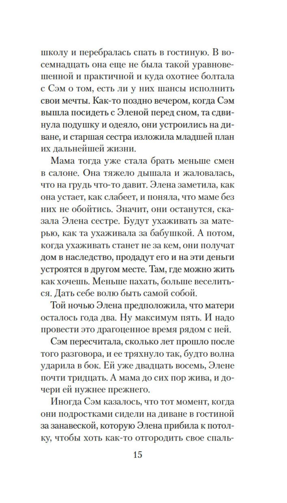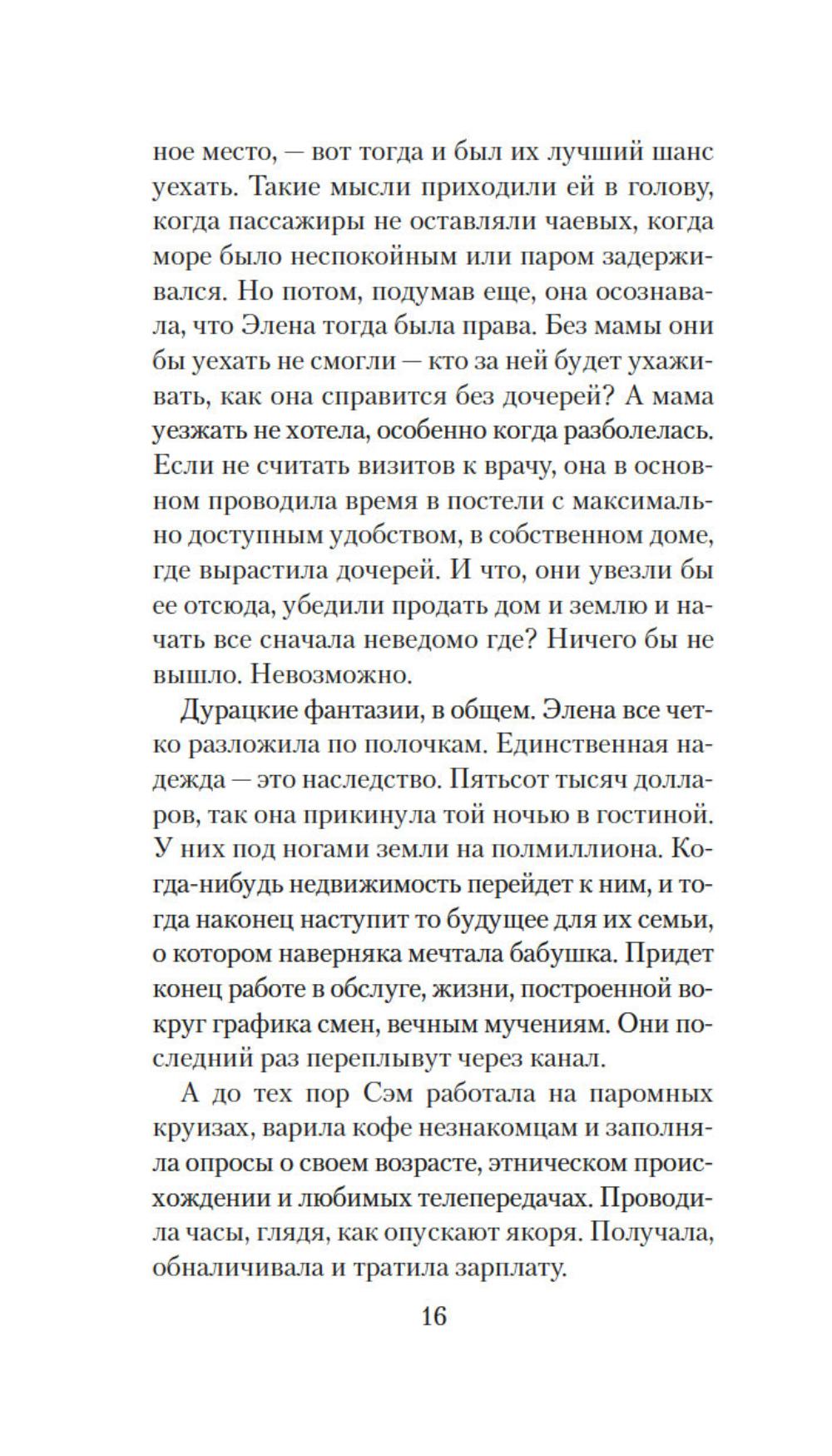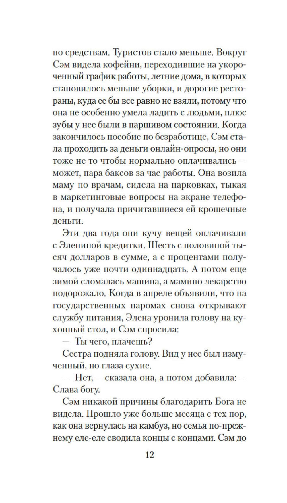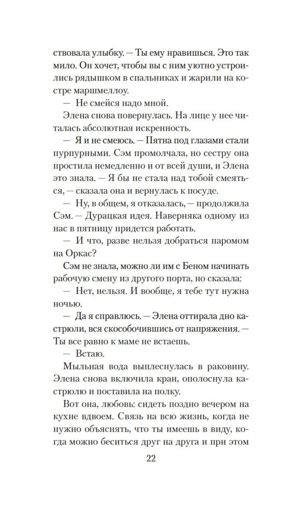 Сэм привыкла во всем слушаться сестру Элену, которая на год старше ее. В детстве родной остров Сан-Хуан казался девочкам волшебным царством, где можно целыми днями гулять по лесам, купаться в океане и проводить время за веселыми играми. Но по мере взросления жизнь поворачивается к сестрам своей жестокой реальностью: матери ставят смертельный диагноз, а работу не найти и денег вечно не хватает, да еще пандемия ковида наступает... И все же Сэм старается держаться, цепляясь за надежду преодолеть трудности и однажды вырваться в большой мир вместе с Эленой. Но на острове откуда ни возьмись появляется огромный дикий медведь - и мечты сестер оказываются под угрозой.| Издательство | Иностранка |