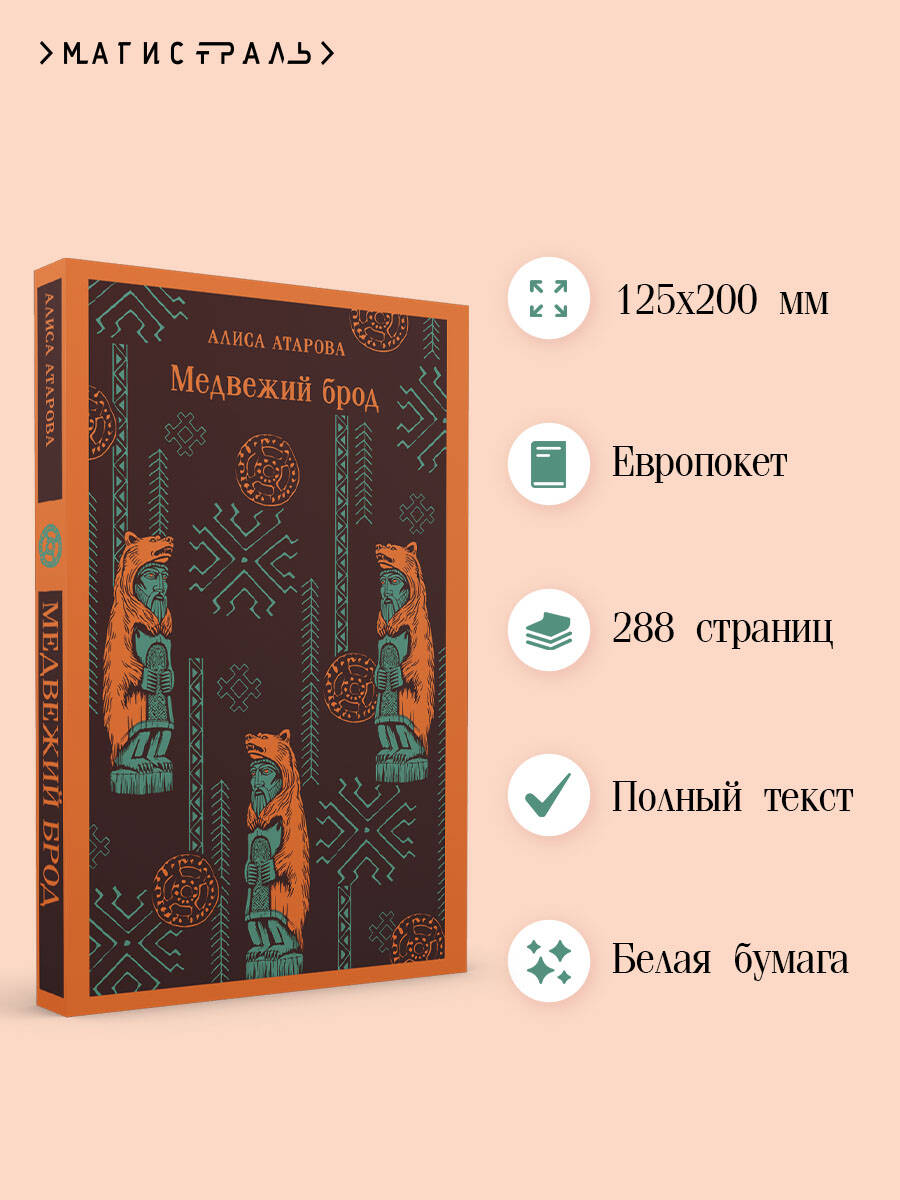 Федор Чу, метеоролог, и его беременная жена Нина приезжают в глухое сибирское село Солнечное на месячную вахту. Это должно было стать передышкой перед родами и помочь им наладить отношения, но вместо этого Федя и Нина попадают в медвежий угол: его жители крайне суеверны и поклоняются медведю-хранителю. Отношения между супругами и местными накаляются, когда в Солнечном начинают происходить странные происшествия. «Медвежий брод» - роман про сибирскую деревню, суеверия и шаманизм. Вошел в финал литературной резиденции «ЭКСМО & АСПИР», посвященной культуре, традициям и фольклорному наследию народов России. Алиса Атарова - писатель, переводчик-китаист, автор книг «Золотая клетка» (под псевдонимом Юй Сы), «Демонология Китая». В оформлении обложки использованы элементы орнаментов народов Сибири. Каждая глава содержит черно-белые иллюстрации.| Издательство | ООО "Издательство "Эксмо" |