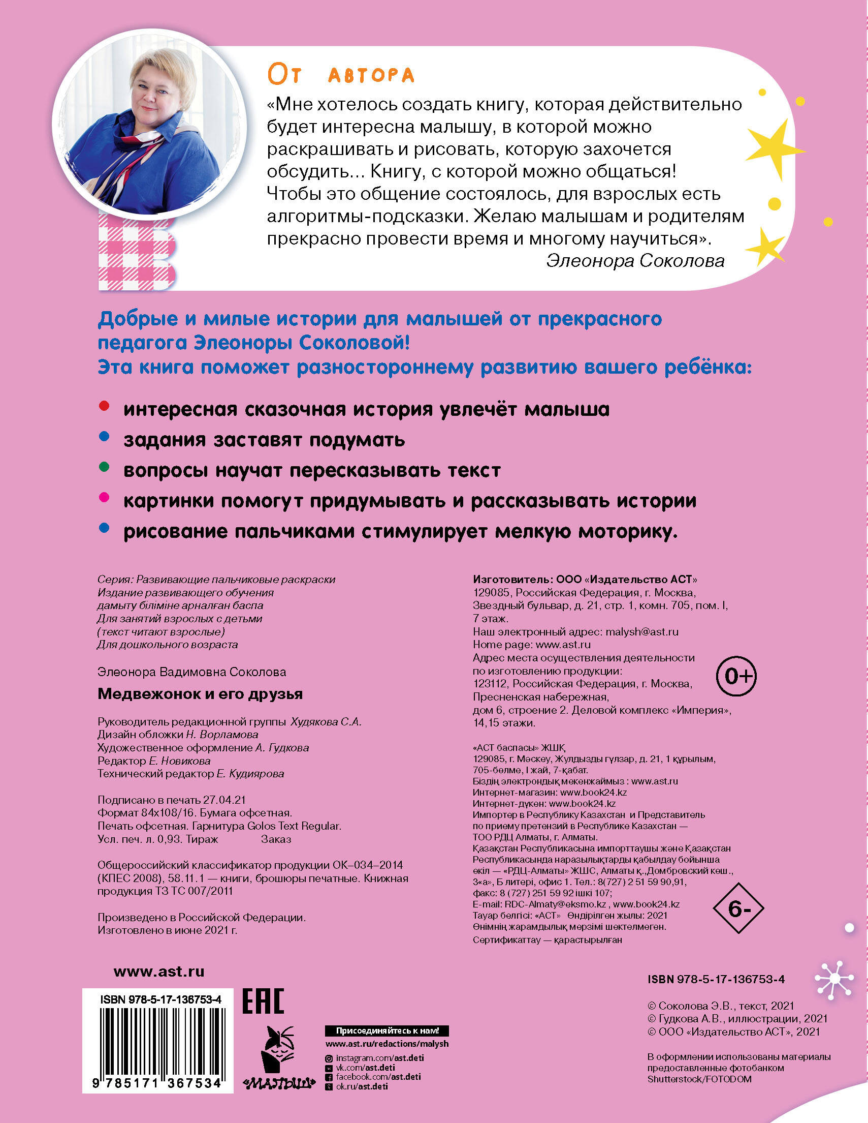 Добрые и милые истории для малышей от прекрасного педагога Элеоноры Соколовой! Эта книга поможет разностороннему развитию вашего ребёнка: • интересная сказочная история увлечёт малыша • задания заставят подумать • вопросы научат пересказывать текст • картинки помогут придумывать и рассказывать истории • рисование пальчиками стимулирует мелкую моторику.