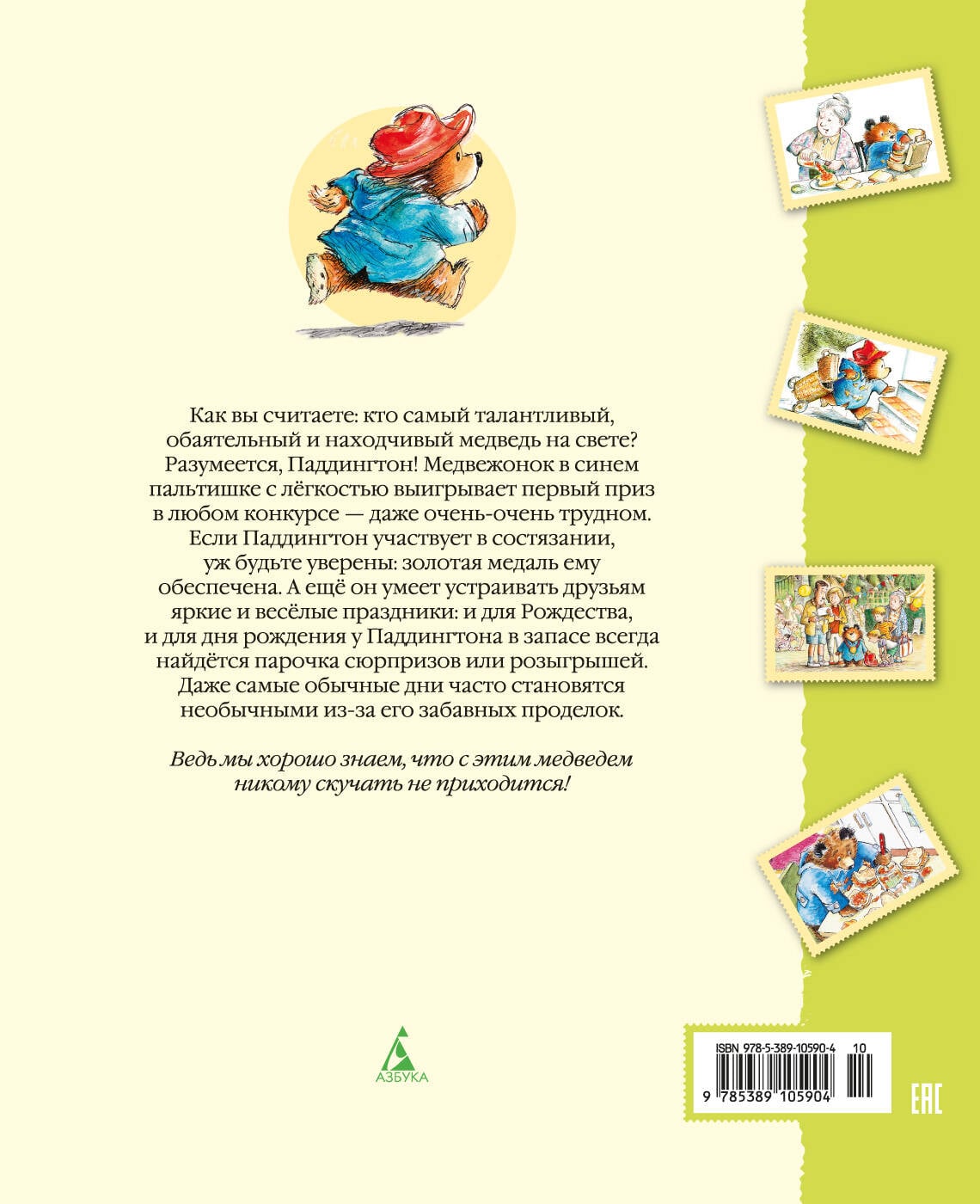 Как вы считаете: кто самый талантливый, обаятельный и находчивый медведь на свете? Разумеется, Паддингтон! Медвежонок в синем пальтишке с лёгкостью выигрывает первый приз в любом конкурсе - даже очень-очень трудном. Если Паддингтон участвует в состязании, уж будьте уверены: золотая медаль ему обеспечена. А ещё он умеет устраивать друзьям яркие и весёлые праздники: и для Рождества и для дня рождения у Паддингтона в запасе всегда найдётся парочка сюрпризов или розыгрышей. Даже самые обычные дни часто становятся необычными из-за его забавных проделок - ведь мы хорошо знаем, что с этим медведем никому скучать не приходится!| Издательство | Азбука-Аттикус Издат.группа ООО |