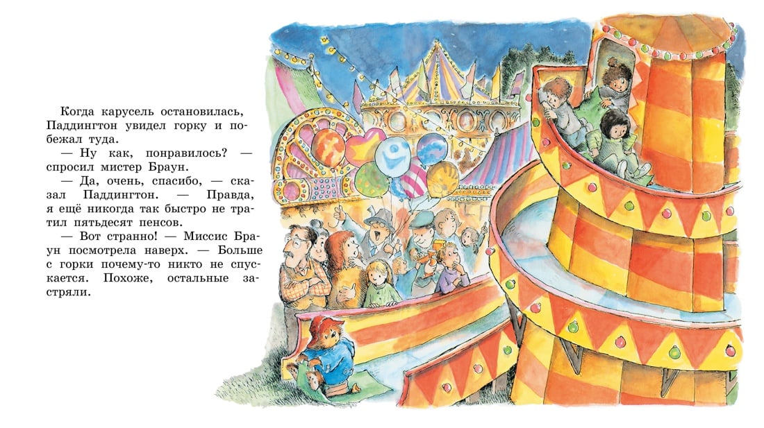 Медвежонок Паддингтон отлично провел день на ярмарке. Он и в тире пострелял, и на карусели покрутился, и с горки скатился... Правда, после него горка почему-то стала липкой и никто больше не смог съехать вниз. Неужели в этом виновата булка с мармеладом, которую всегда таскает с собой один запасливый медвежонок? Но Паддингтону некогда в этом разбираться, ведь впереди еще столько развлечений! Такой уж это медведь - где он, там никогда не бывает скучно.| Издательство | Азбука |