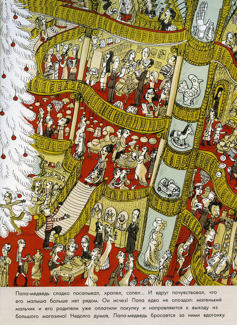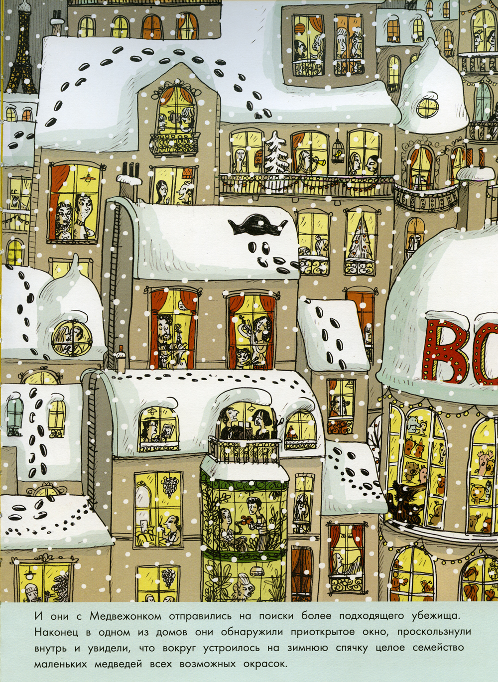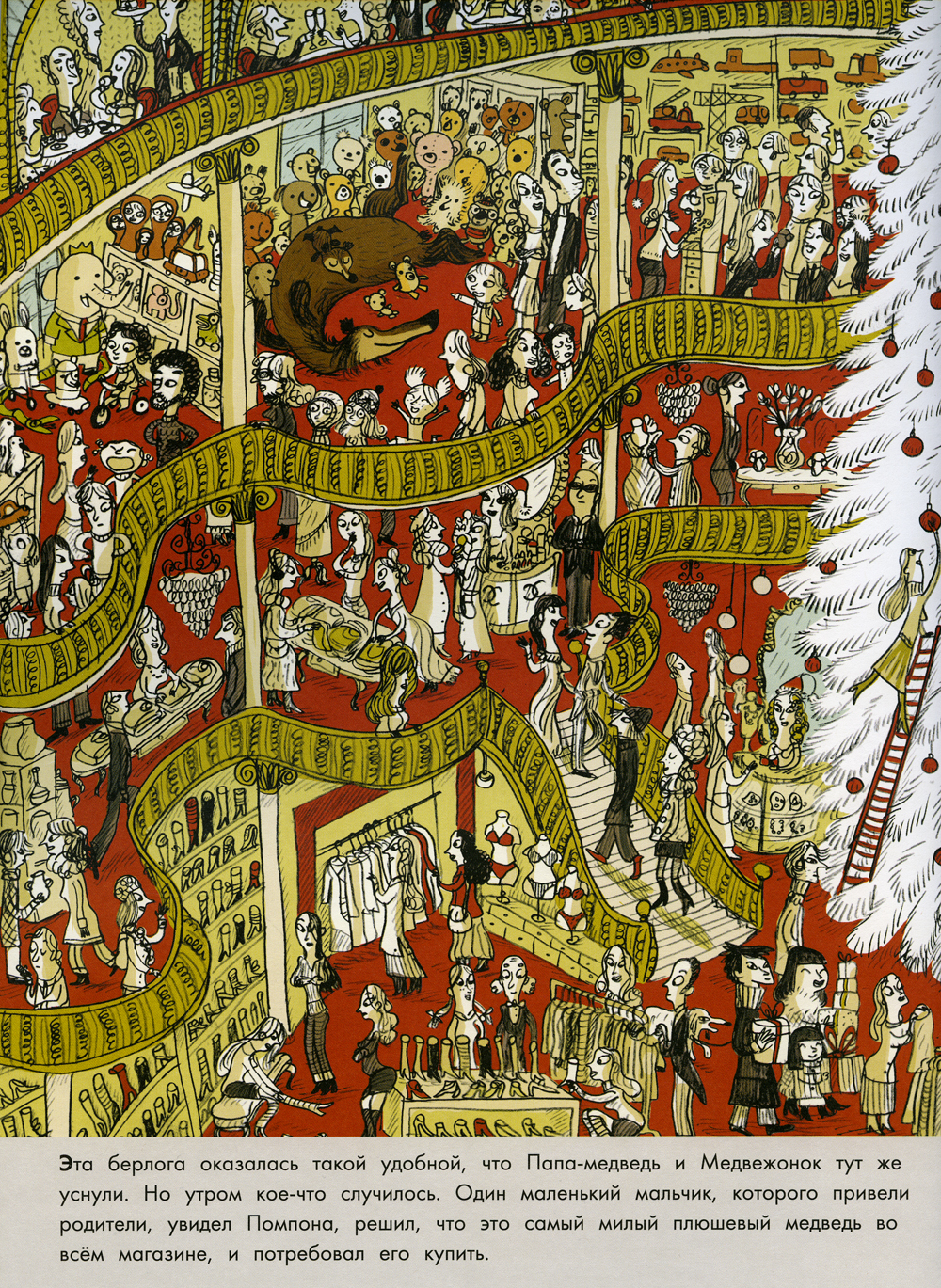 Папа и медвежонок Помпон долго искали, куда бы спрятаться от снегопада, - и нашли прекрасную просторную берлогу, где уже ютились сотни разноцветных медведей. А утром сын пропал: берлога оказалась магазином, и Помпона купил и унёс с собой какой-то мальчик! Не раздумывая ни минуты, папа-медведь бросается в погоню! Как же ему догнать медвежонка?!| Издательство | ИД КомпасГид |