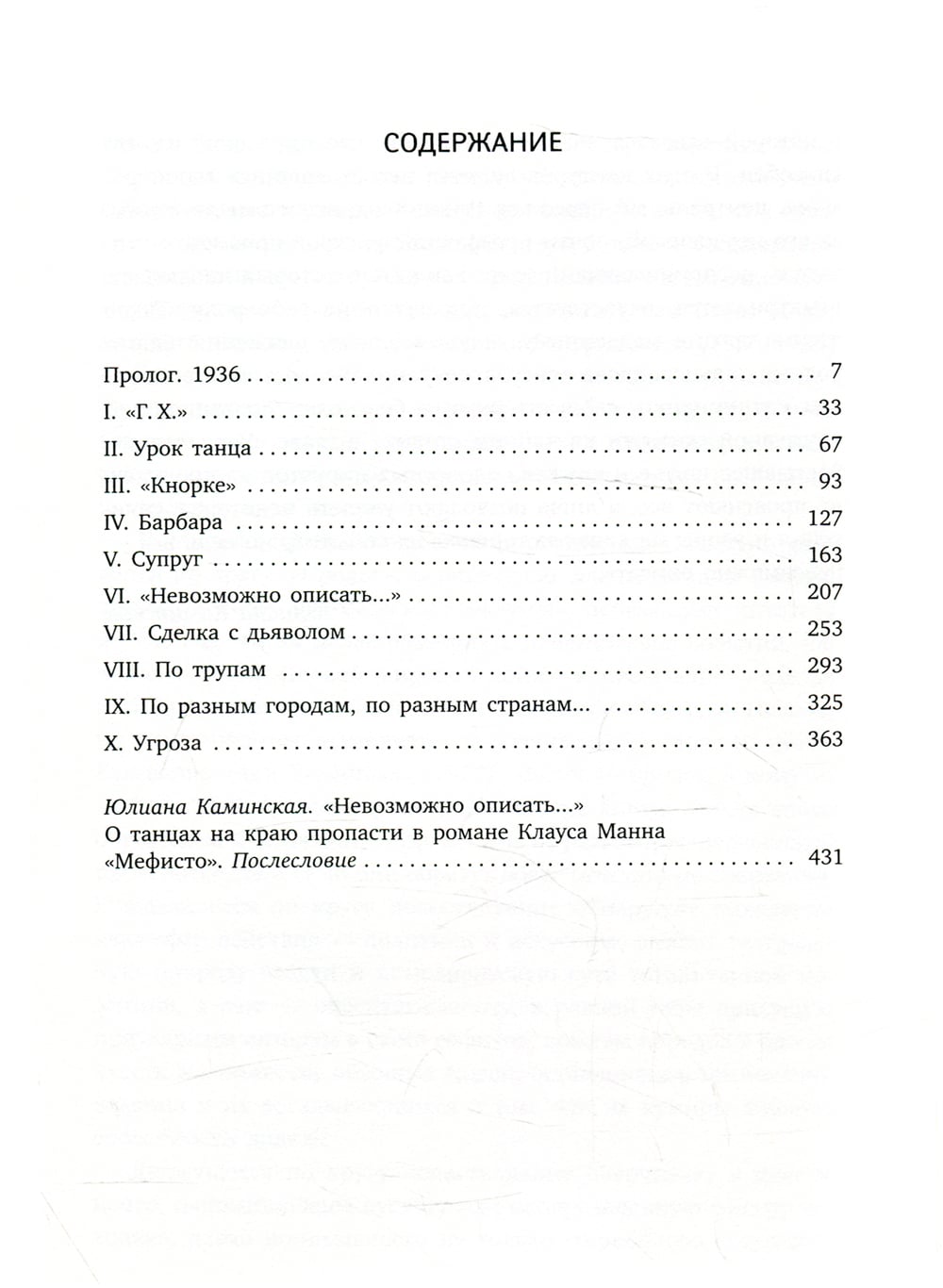 Становится ли артист, присягнувший преступной власти, соучастником ее злодеяний? Ответственен ли он за те убийства, которые совершаются по приказу его высоких покровителей? Роман «Мефисто» - один из самых известных в творчестве немецкого писателя Клауса Манна (1906-1949). Старший сын нобелевского лауреата Томаса Манна, племянник другого выдающегося прозаика - Генриха Манна, талантливый представитель семьи, которую считают самой влиятельной в истории Германии XX века, Клаус Манн был вынужден в 1933 году отправиться в эмиграцию, где и появился его роман об обществе, с невероятной быстротой устремляющемся в безумие. Картина свободной Германии конца 1920-х годов - с расцветом танцевальной культуры, множеством театров и кабаре, свободой слова и разнообразием политических партий - сменяется описанием 1930-х - времени становления диктатуры нацизма. Культурой в новой Германии руководят политики и чиновники, чуждые искусствам и человечности, общая атмосфера пропитана страхом и предательством, верной остается лишь одна точка зрения, остальные же караются как инакомыслие. Центральный герой романа, актер Хендрик Хефген, как и известный герой мировой литературы, роль которого он исполняет на сцене, стоит перед роковым решением: обрести славу и благополучие, но потерять собственную душу. Почти сто лет отделяют действие романа от наших дней, а события, разворачивающиеся на страницах книги, не утрачивают своей значимости и актуальности. В 1981 году режиссер Иштван Сабо снял по роману одноименный фильм, главную роль в котором исполнил блестящий австрийский актер Клаус Мария Брандауэр. Картина получила награду Каннского кинофестиваля за сценарий, а также премию «Оскар» в номинации "Лучший фильм на иностранном языке".