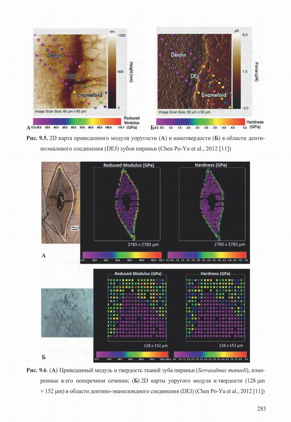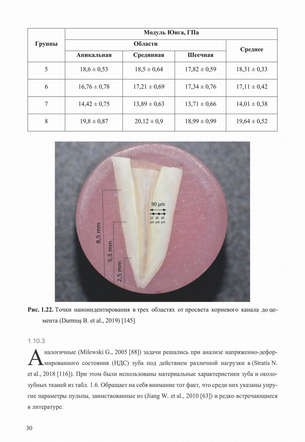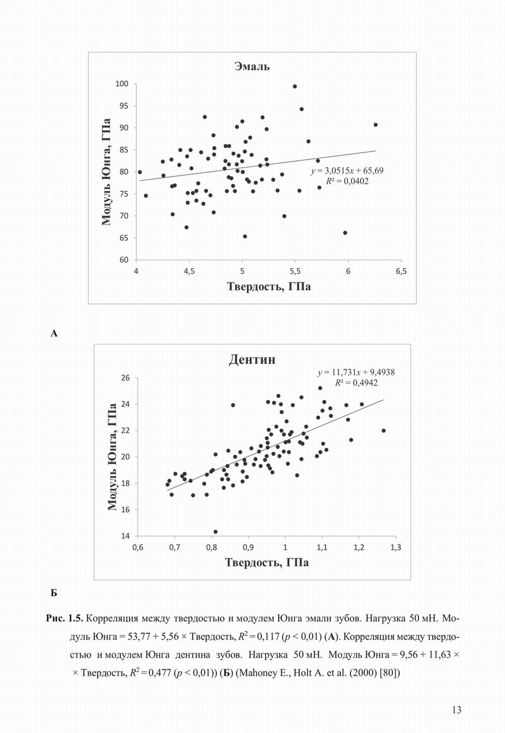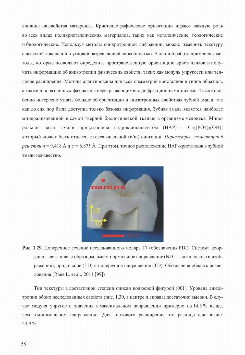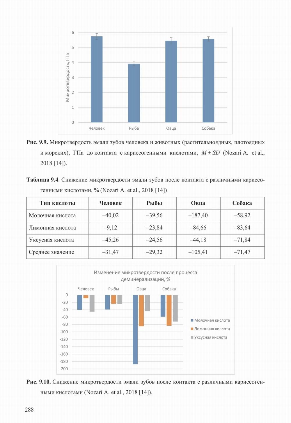 Описаны результаты измерения упругих моду лей и нанотвердости интактной эмали и эмали с кариесом, а также исследования нанотвердости эмали зубов после охлаждения до сверхнизких температур (4,2 К). Анализируются отношение H/E и вязкость разрушения эмали и дентина в сравнении с другими материалами. Визуализирована матрица упругих постоянных дентина и эмали. Рассмотрены упругие модули, параметры упругой анизотропии и коэффициент Пуассона дентина и эмали как анизотропных сред гексагональной сингонии. Возможность такого подхода объясняется данными о морфологии твердых тканей зуба как биокомпозита с коллагеновой матрицей и минеральной составляю щей в виде кристаллов апатитов. В рамках этой модели установлено, что коэффициент Пуассона дентина в некоторых направлениях выше теоретического предела 0,5 для изотропных материалов, в том числе композиционных, что может сказываться на качестве реставраций. Также установлено, что минимальные значения коэффициента Пуассона дентина и эмали больше нуля, то есть и дентин, и эмаль не являются ауксетиками - материалами с отрицательным коэффициентом Пуассона. Приведены данные по упругим свойствам и прочности околозубных тканей, периодонтальной связки и слизистой оболочки рта, а также кристаллов гидроксиапатита. Исследовано влияние пищевой диеты (напитков, молока и молочных продуктов, сыра, сахара и сладостей) и средств гигиены на твердость и шероховатость зубной эмали. Выполнено сравнение твердости эмали зубов человека и различных видов животных (растительноядных, плотоядных и морских). Установлено, что физико- механические свойства зубной эмали человека уникальны: они занимают достойное место на диаграмме «твердость - модуль упругости» биоминералов и других материалов, а по механическим характеристикам превосходят соответствующие показатели эмали зубов акул, ядовитых клыков кобры - самых опасных змей на земле и не уступают по твердости эмали клыков крыс - одних из наиболее живучих млекопитающих на планете и гиен с мощнейшими челюстями и невероятной жестокостью. Приведены начальные сведения из механики.