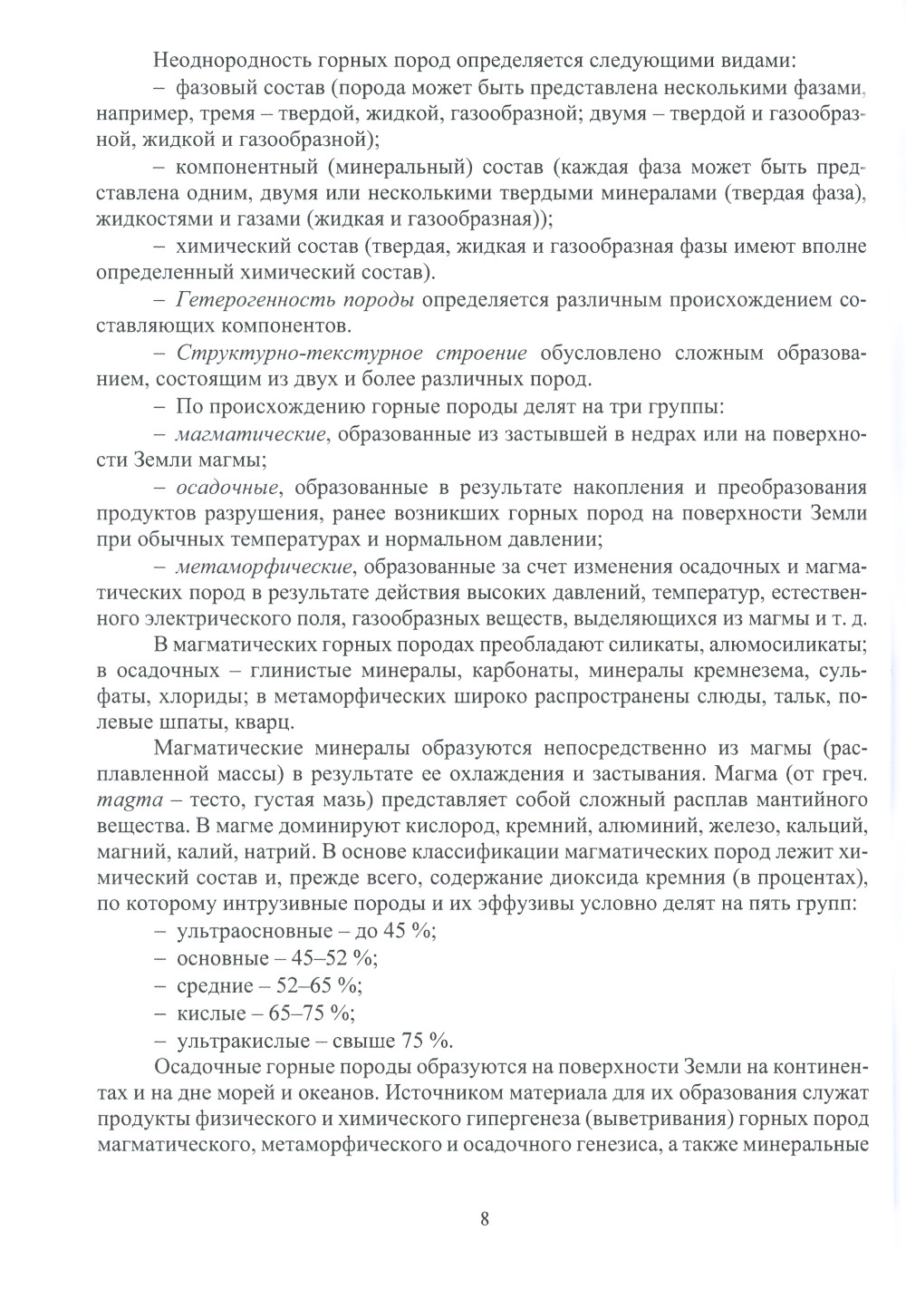 Приведены сведения о плотностных, прочностных, деформационных, реологических, горно-технологических свойствах горных пород. Изложена суть стандартных методов испытаний горных пород. Рассмотрены основные модели и распространенные в практике горного дела классификации массивов горных пород. Представлены фактические данные об основных физико-механических свойствах пород осадочной угленосной толщи Донбасса. Для обучающихся по специальности 21.05.04 «Горное дело» всех форм обучения, а также для тех, кто интересуется данной тематикой.| Издательство | Инфра-Инженерия |