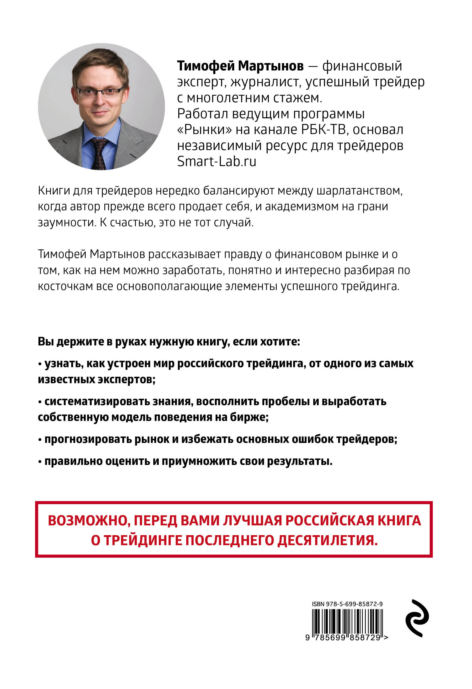 Тимофей Мартынов - суперзвезда российского трейдинга, более 10 лет является участником торговли на биржевом рынке, создатель крупнейшего сообщества трейдеров sMart-Lab, ведущий программы "Деньги" на телеканале РБК (2007-2013). Основываясь на личном опыте, Тимофей проведет вас в мир биржевой торговли и расскажет о подводных камнях и неоспоримых плюсах профессии трейдера. Эта книга полезна как начинающим трейдерам, так и профессионалам, стремящимся повысить свой уровень.| Издательство | ООО "Издательство "Эксмо" |
