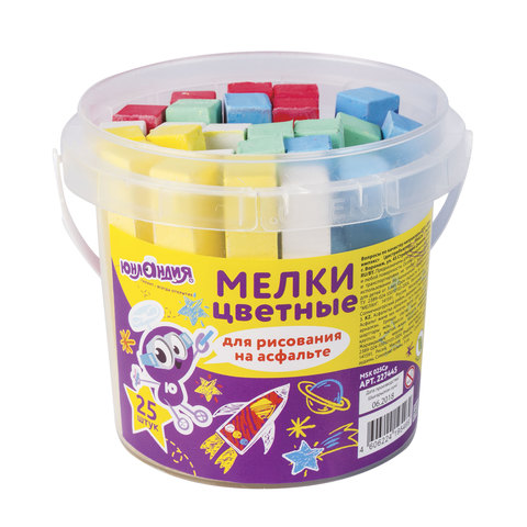 Мел цветной для рисования на асфальте "Юнландия", квадратный, 25 штук