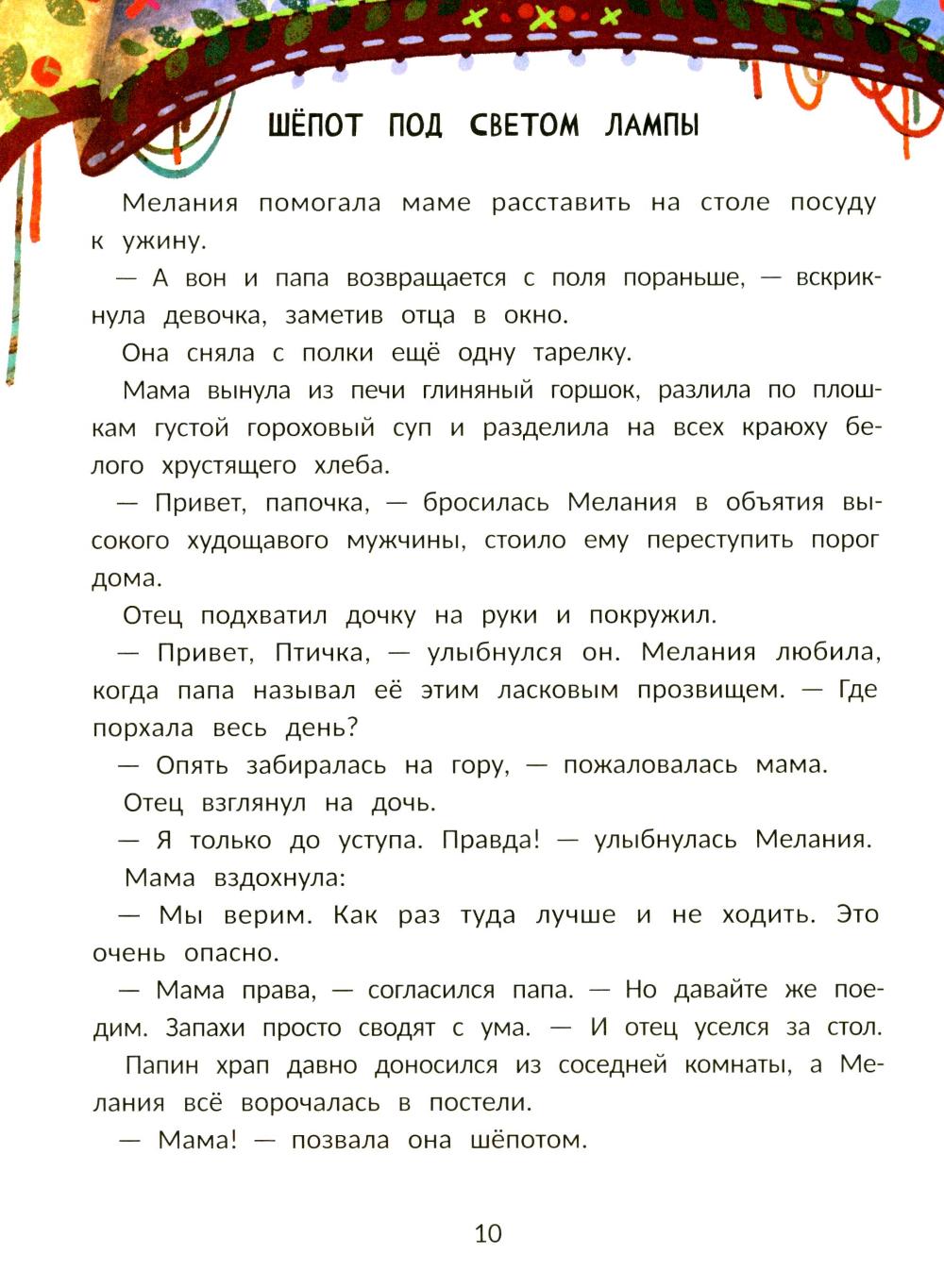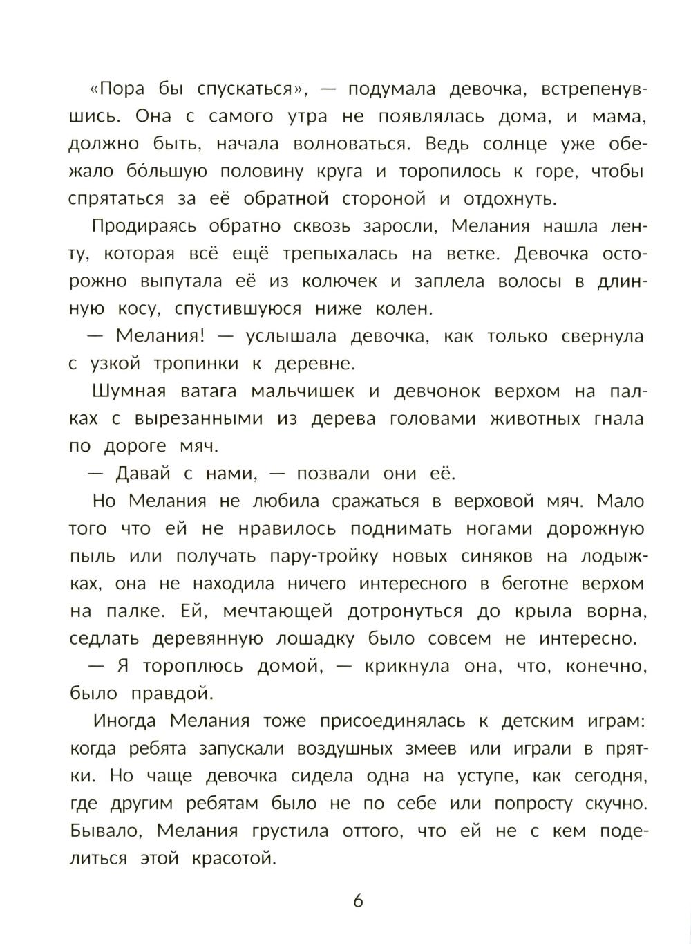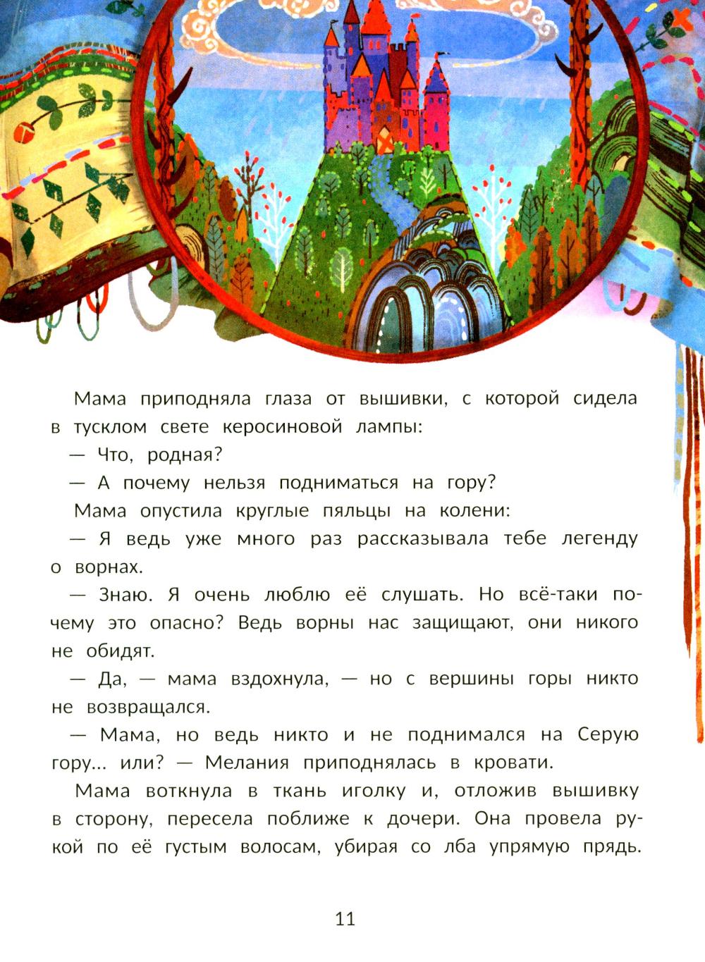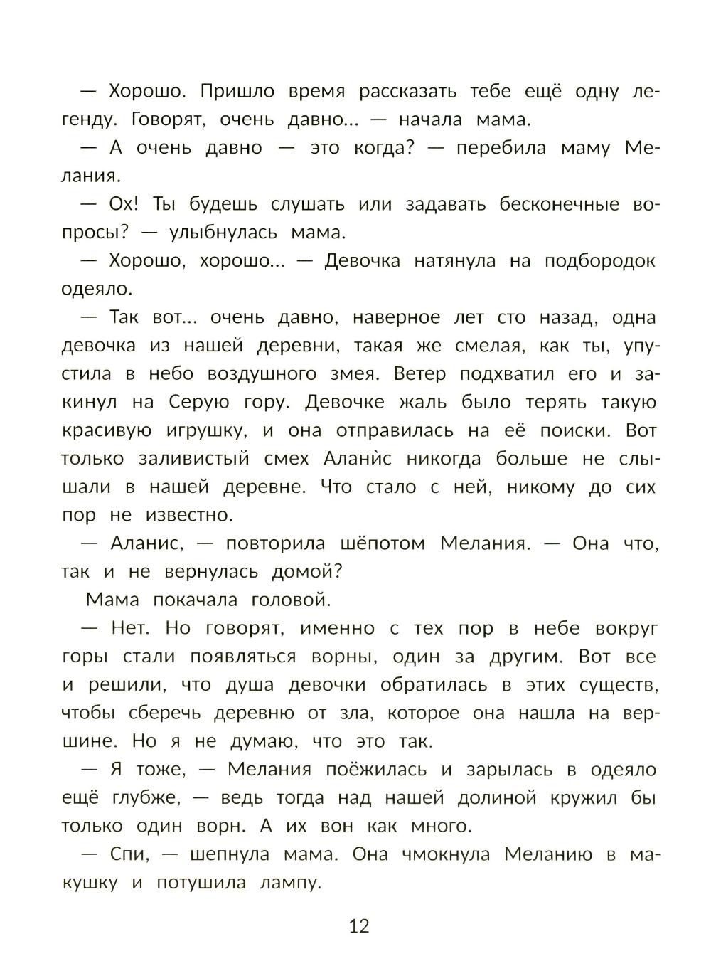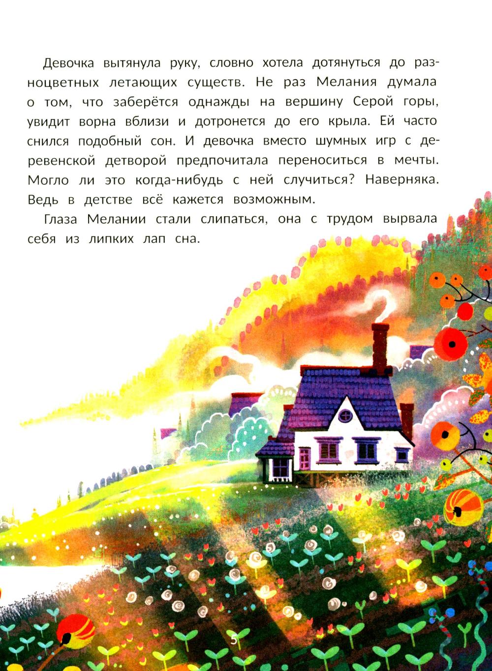 Мелания живёт в деревне у подножия горы, где берёт начало Звёздная река. По древней легенде, из вод волшебной реки рождаются необыкновенные существа - ворны, которые кружат у горного пика и защищают жителей деревни от злых сил, таящихся на вершине. Но ворнов в небе становится всё меньше. Девочка хочет узнать, почему волшебные существа исчезают, а заодно осуществить давнюю мечту - дотронуться до крыла одного из них. Так Мелания решается на опасное путешествие, в которое с ней отправятся мышонок Носик и неуклюжий Снукс - ворн, не умеющий летать.| Издательство | Феникс |