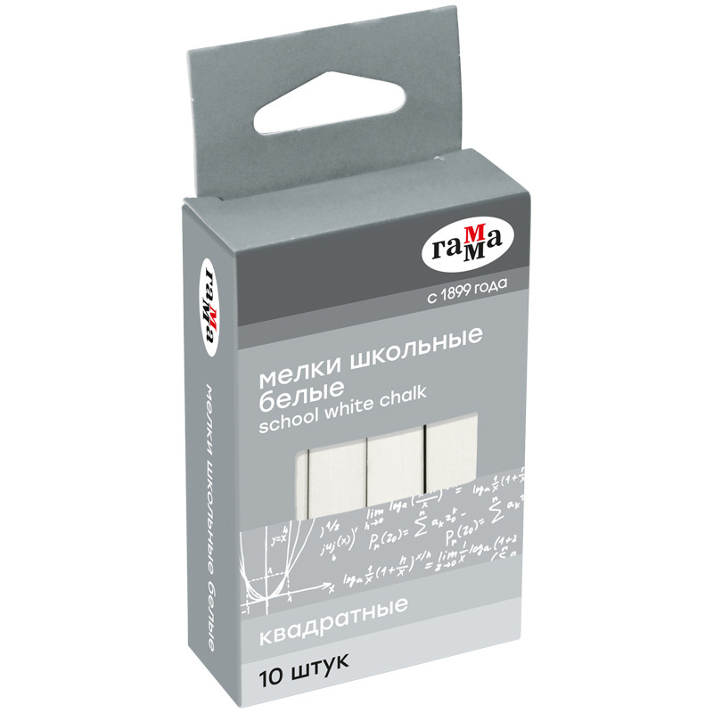 Мелки белый "Гамма", квадратные, мягкие, 10 штук