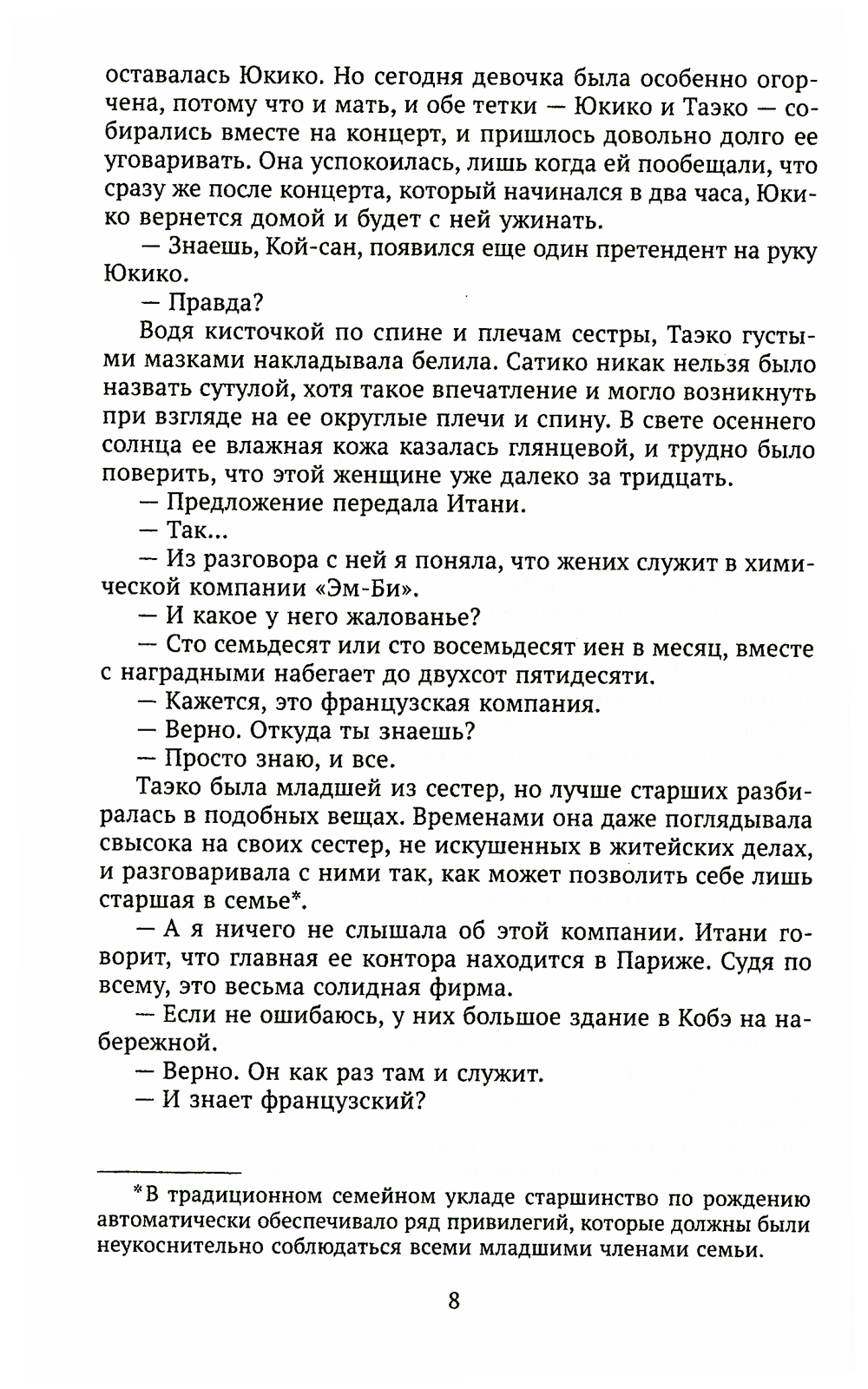 Роман «Мелкий снег» {Сасамэ юки) - одно из самых знаменитых произведений Дзюнъитиро Танидзаки (1886-1965), в котором мастерство писателя проявилось во всей своей полноте и оригинальности. Это семейная сага, рисующая жизнь четырех сестер из старинного купеческого рода. Воспитанные в традиционном духе, но заметно европеизированные и не чуждые артистических дарований, они выступают как хранительницы культуры перед лицом надвигающейся войны и нового варварства. Ключом к пониманию романа служит поэтический образ, вынесенный в его заглавие и раскрывающий его внутренний, сокровенный смысл. Снег, наравне с цветами сакуры, издавна считается в Японии объектом эстетического любования. Название книги прочитывается как емкий символ прекрасного, символ хрупкой красоты и гармонии, противостоящей силам хаоса и разрушения.| Издательство | Гиперион |
