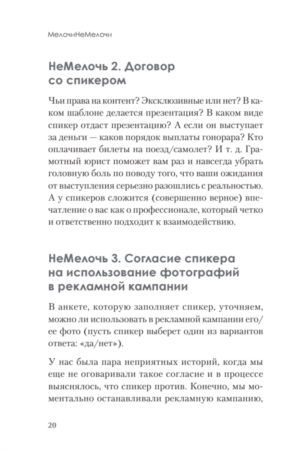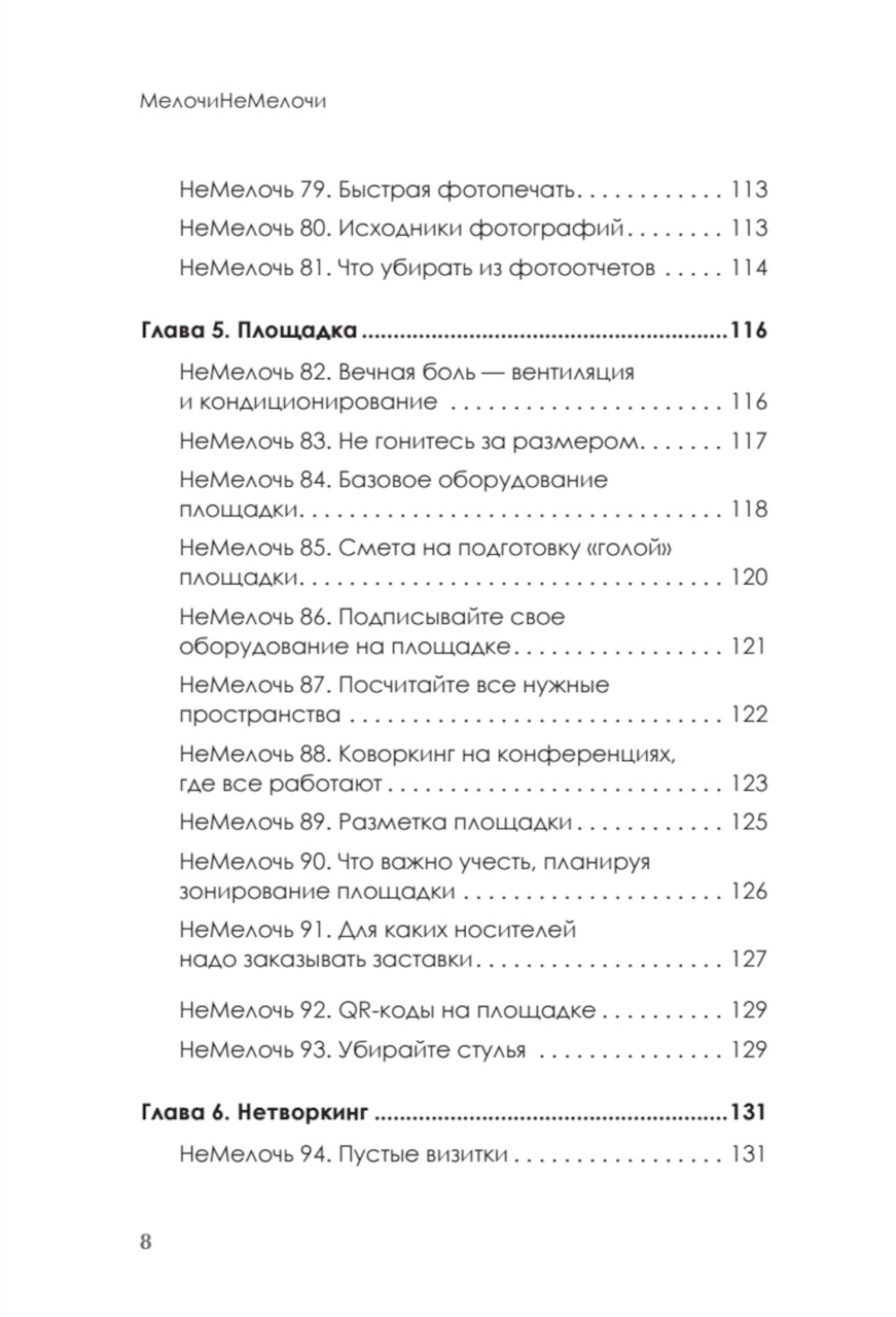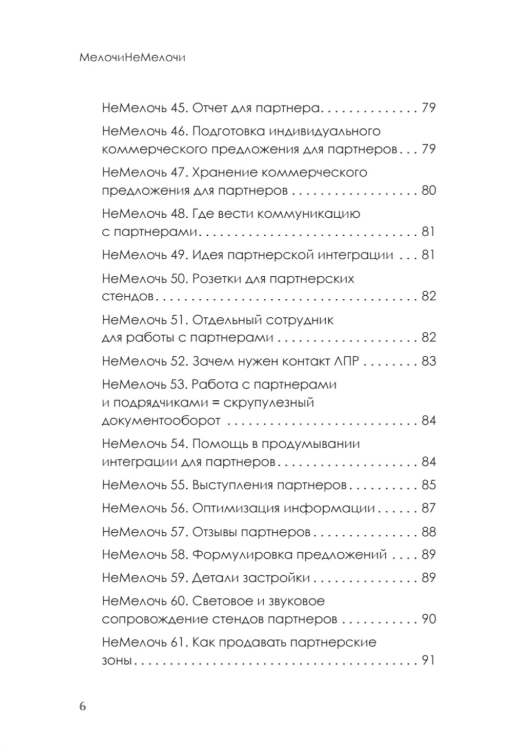 Наталия Франкель, известный эксперт в организации и проведении открытых событий, уверена, что в ивентах очень важны нюансы. На многих событиях - маленьких и больших, закрытых и открытых, платных и бесплатных - многое можно доработать и довести до совершенства. Именно НеМелочи усиливают уникальность события, поддерживают и генерят новые идеи. В книге представлены 200 авторских НеМелочей и лайфхаков, которые за счет простейших, часто бесплатных и быстрых действий помогут улучшить деловое или развлекательное событие любого формата, масштаба и сложности. Пробуйте применить их, чтобы ваши ивенты стали еще более удобными, интересными и привлекательными для аудитории. Издание будет полезно организаторам событий, руководителям и менеджерам ивент-агентств, специалистам PR-служб, комьюнити-менеджерам, а также всем, кто желает обеспечить успех своим мероприятиям и обойти конкурентов.| Издательство | Питер |