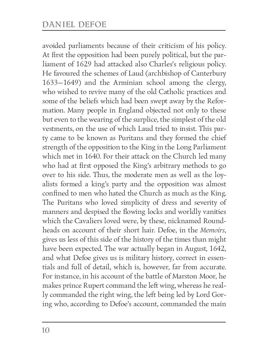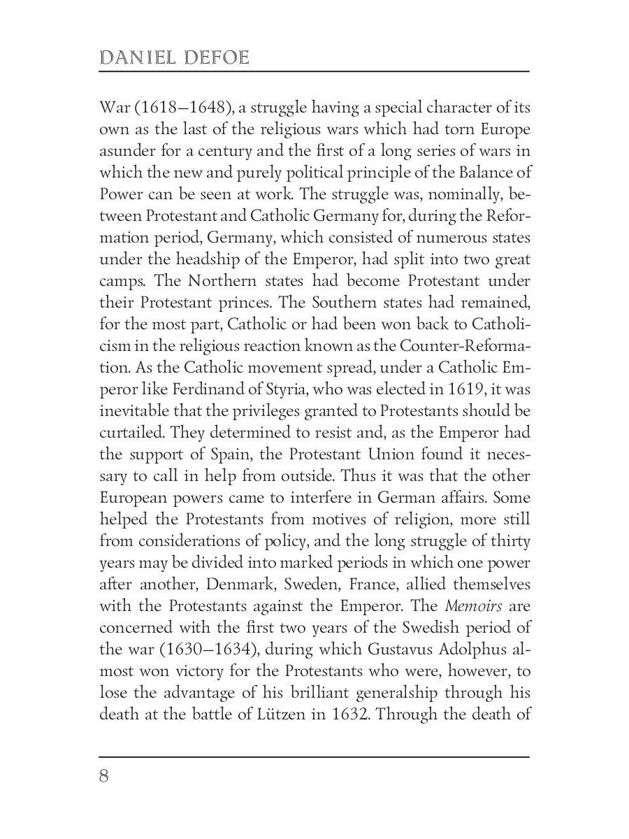 Daniel Defoe was an English trader, writer, journalist, pamphleteer and spy. He is most famous for his novel Robinson Crusoe, which is second only to the Bible in its number of translations. Memoirs of a Cavalier is a work of historical fiction by Daniel Defoe, set during the Thirty Years' War and the English Civil Wars.| Издательство | Т8 RUGRAM |