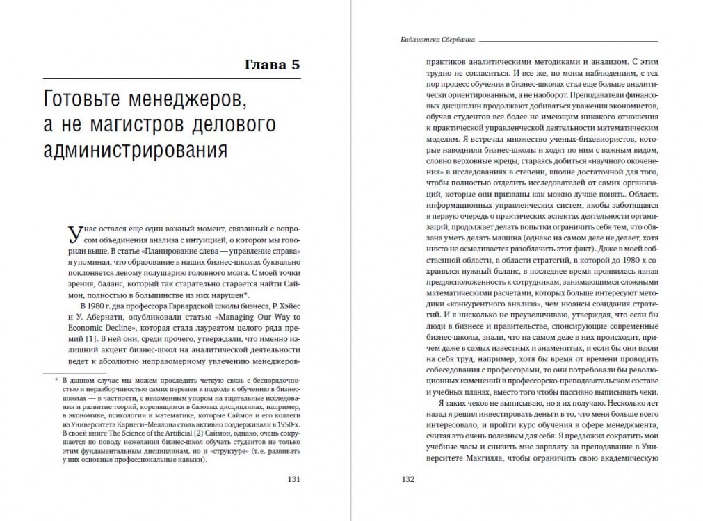 Генри Минцберг, признанный гуру теории и практики управления, подробно рассказывает о том, что именно необходимо для успешного управления организацией. Автор считает, что очень часто многочисленные трудности вынуждают менеджера к поверхностным действиям: он перегружает себя работой, поспешно реагирует на внешние стимулы и раздражители, избегает обобщений, принимает решения небольшими порциями, действуя импульсивно и без должной подготовки. В то же время эффективный руководитель способен устоять перед искушением поступать поверхностно; он может сделать шаг назад, чтобы увидеть целостную картину, и активно использует аналитические методы.