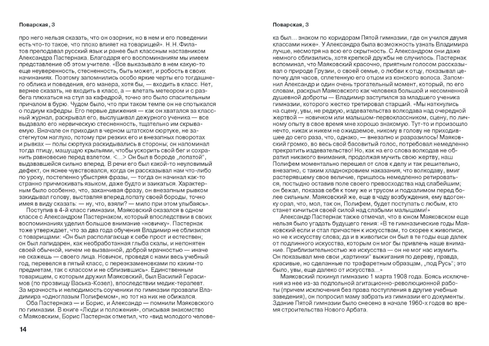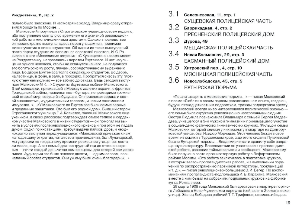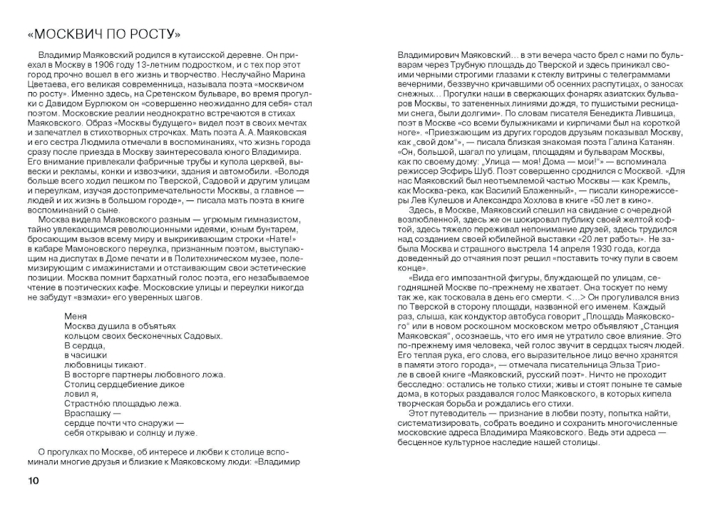 Книга является первой попыткой отыскать, систематизировать, собрать воедино максимальное количество московских адресов Владимира Маяковского. Маяковский, наряду с Мариной Цветаевой, Сергеем Есениным, Борисом Пастернаком, - один из самых «московских» поэтов. Маяковский приехал в Москву в 1906 году, и с тех пор город этот прочно вошел в его сознание и творчество. Охват адресов весьма разнообразен - это квартиры самого Маяковского и его семьи, квартиры О. Брика и Л. Брик, учебные заведения, в которых учился будущий поэт, адреса, связанные с его тюремным заключением, адреса его друзей, поэтические кафе и «сотни эстрад», где выступал Маяковский с чтением стихов, редакции газет и журналов, сотрудником которых он был. Большое внимание уделяется разным граням таланта Маяковского, разным сторонам его личности - рассматривается не только поэтическая работа, но и деятельность Маяковского как художника, актера, сценариста, журналиста.| Издательство | Бослен |