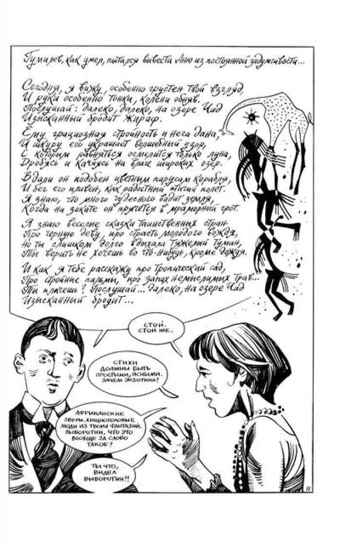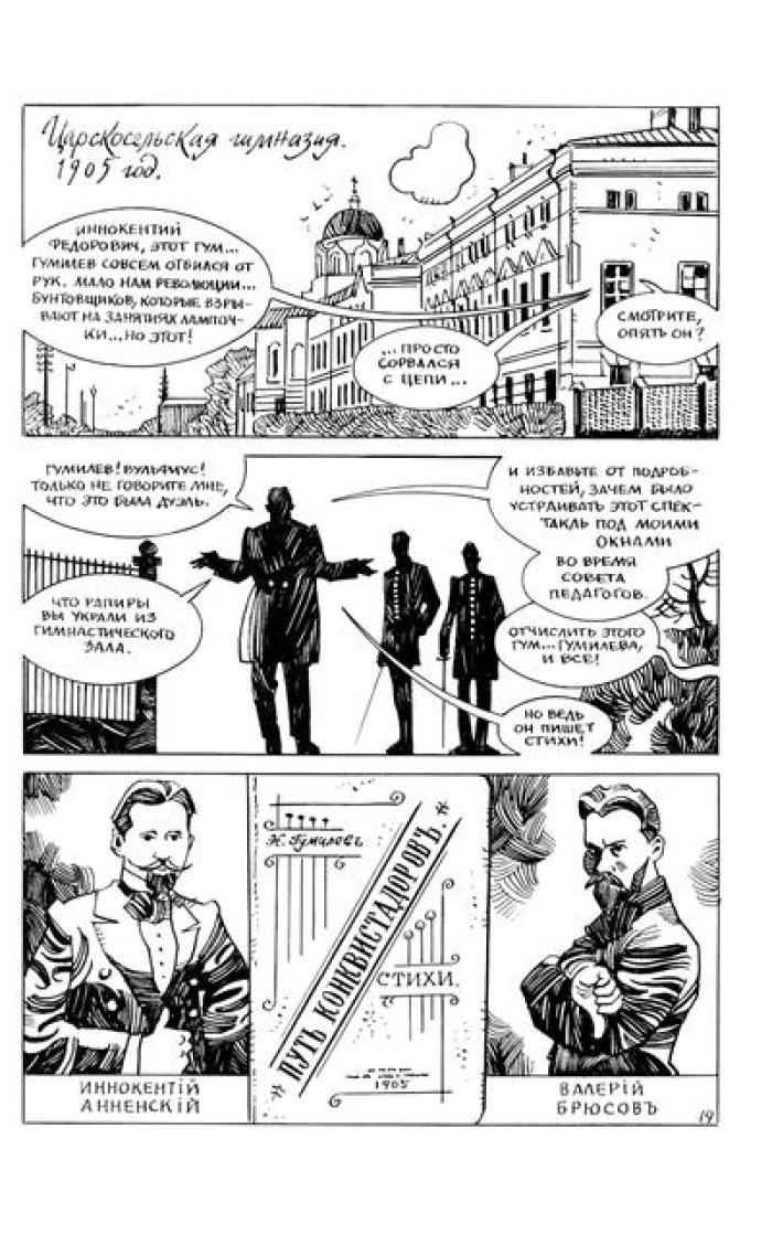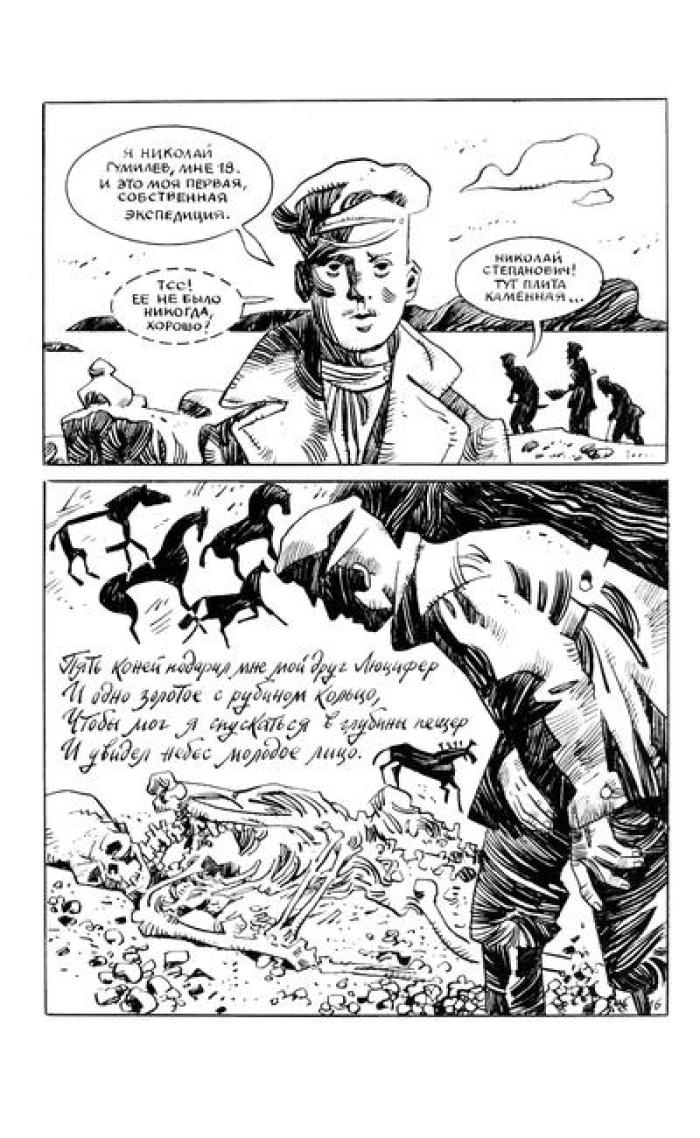 Имя Николая Гумилева 70 лет было под запретом. Читать его стихи считалось преступлением. А могилу расстрелянного большевиками поэта ищут до сих пор. Но чем герой войны, путешественник по джунглям Африки, наставник молодых литераторов и любимец женщин был так неудобен революционерам? Тем, что однажды признал - если бы Кронштадтское восстание перекинулось на Петроград, он был бы в числе восставших? Или дело было в чём-то ещё? О чём он видел сны в последние часы перед расстрелом? Что вспоминал? Дуэли, сражения с дикими племенами, поиски артефактов и другие загадки поэта-воина - в новом графическом романе.| Издательство | Alpaca |