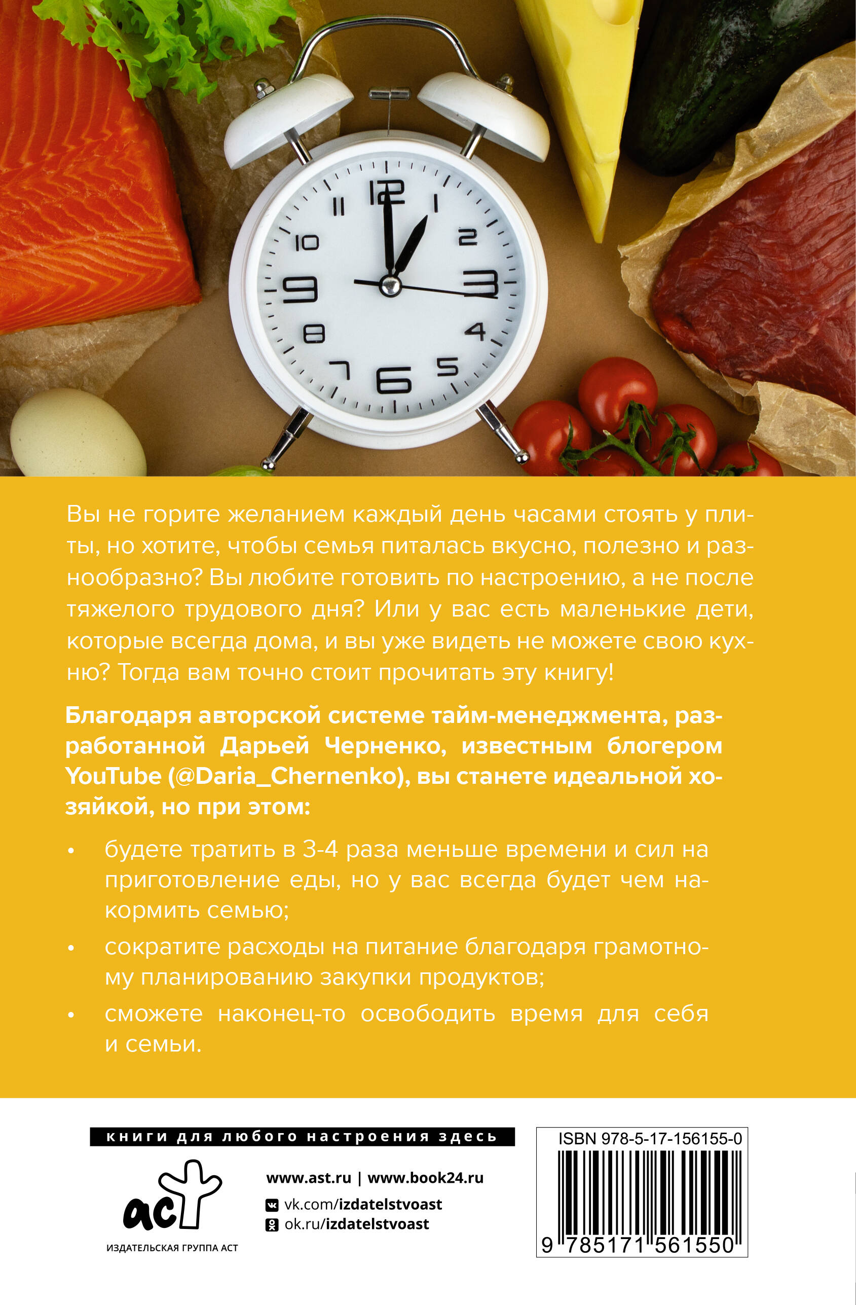 Вы не горите желанием каждый день часами стоять у плиты, но хотите, чтобы семья питалась вкусно, полезно и разнообразно? Вы любите готовить по настроению, а не после тяжелого трудового дня? Или у вас есть маленькие дети, которые всегда дома, и вы уже видеть не можете свою кухню? Тогда вам точно стоит прочитать эту книгу! Благодаря авторской системе тайм-менеджмента, разработанной Дарьей Черненко, известным блогером YouTube (@Daria_Chernenko), вы станете идеальной хозяйкой, но при этом: - будете тратить в 3-4 раза меньше времени и сил на приготовление еды, но у вас всегда будет чем накормить семью; - сократите расходы на питание благодаря грамотному планированию закупки продуктов; - сможете наконец-то освободить время для себя и семьи.