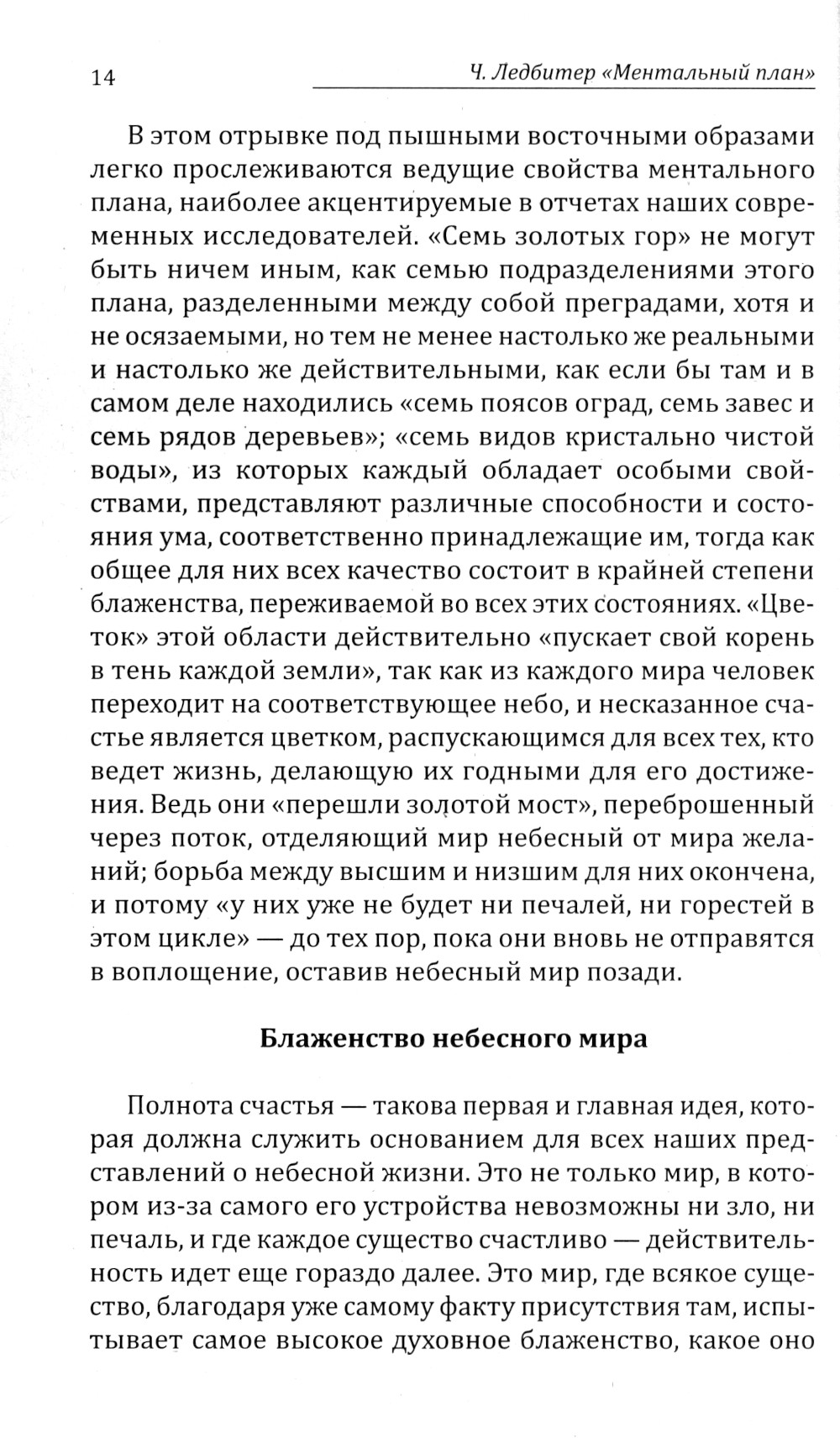 Ментальный план, где и происходит небесная жизнь, является третьим из пяти великих планов, с которыми в настоящее время связано человечество. Ниже него находятся планы астральный и физический, выше него - планы буддхи и нирваны. Это тот самый план, на котором человек, если он конечно не находится на совсем уж ранней стадии своего развития, проводит больше всего времени в течение процесса своей эволюции.