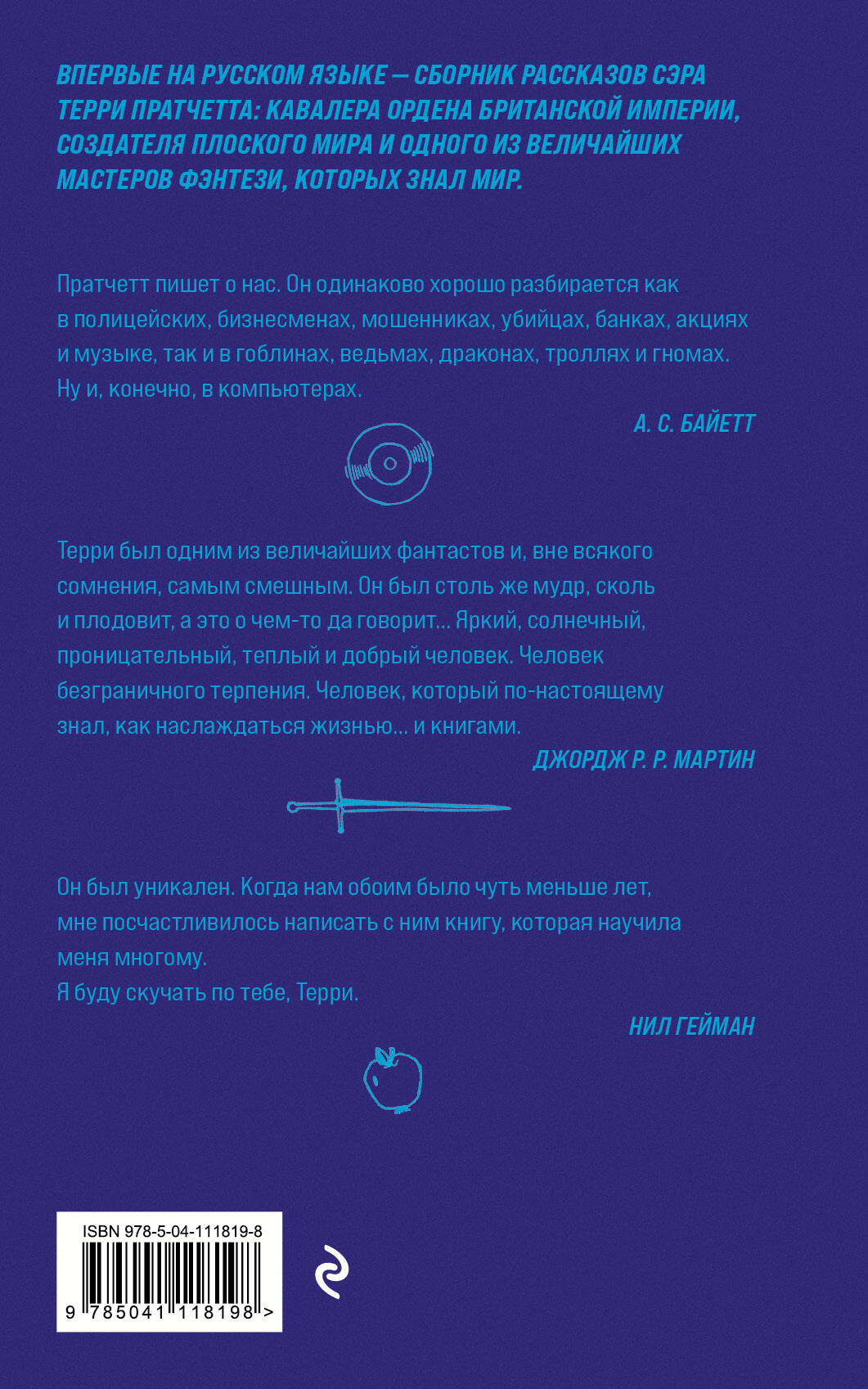 Дьявол нанимает рекламщика, чтобы популяризировать Ад. Писатель убивает опостылевшего персонажа, но следующим утром тот объявляется на пороге его дома. Незадачливые путешественники попадают в мир оживших рождественских открыток - и видят там то, что Лавкрафту не снилось. Волшебники Незримого Университета думают, как пережить проверку лорда Витинари, а капитан Моркоу решает проблему преступности среди анк-морпоркской молодежи. Встречайте сборник коротких историй сэра Терри Пратчетта: от фэнтези и стихов до научной фантастики, от первого опубликованного рассказа, написанного юным Терри в 13 лет, до отрывков, не вошедших в повести о Плоском мире.