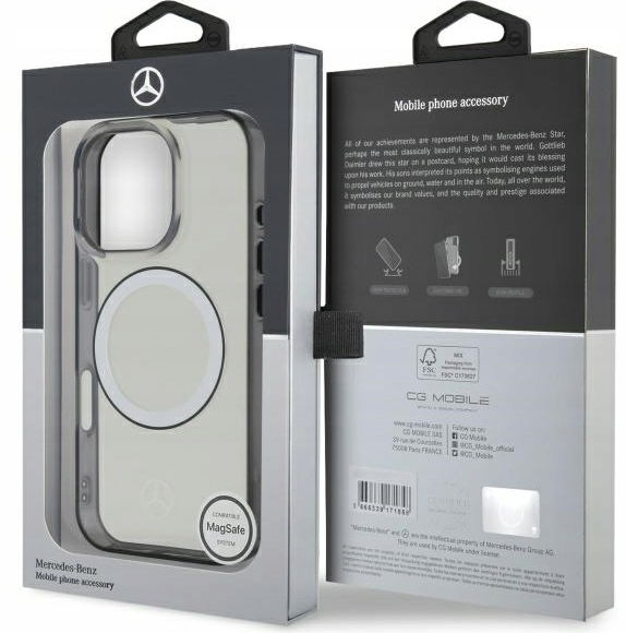 <p>Элегантный серебристый дизайн: Корпус украшен характерным серебряным кольцом и логотипом Mercedes-Benz, что придает ему престижный вид.<br>Совместимость с MagSafe: Встроенное магнитное кольцо MagSafe обеспечивает быструю и удобную беспроводную зарядку и совместимость с аксессуарами MagSafe.<br>Исключительная защита: Прочная конструкция чехла защищает ваш телефон от царапин, ударов и повседневного износа.<br>Точная посадка: Чехол идеально подходит для вашего телефона, обеспечивая полный доступ к портам и кнопкам.<br>Лицензированный продукт Mercedes-Benz: Чехол изготовлен по лицензии, гарантирующей высочайшее качество и подлинность бренда.</p>