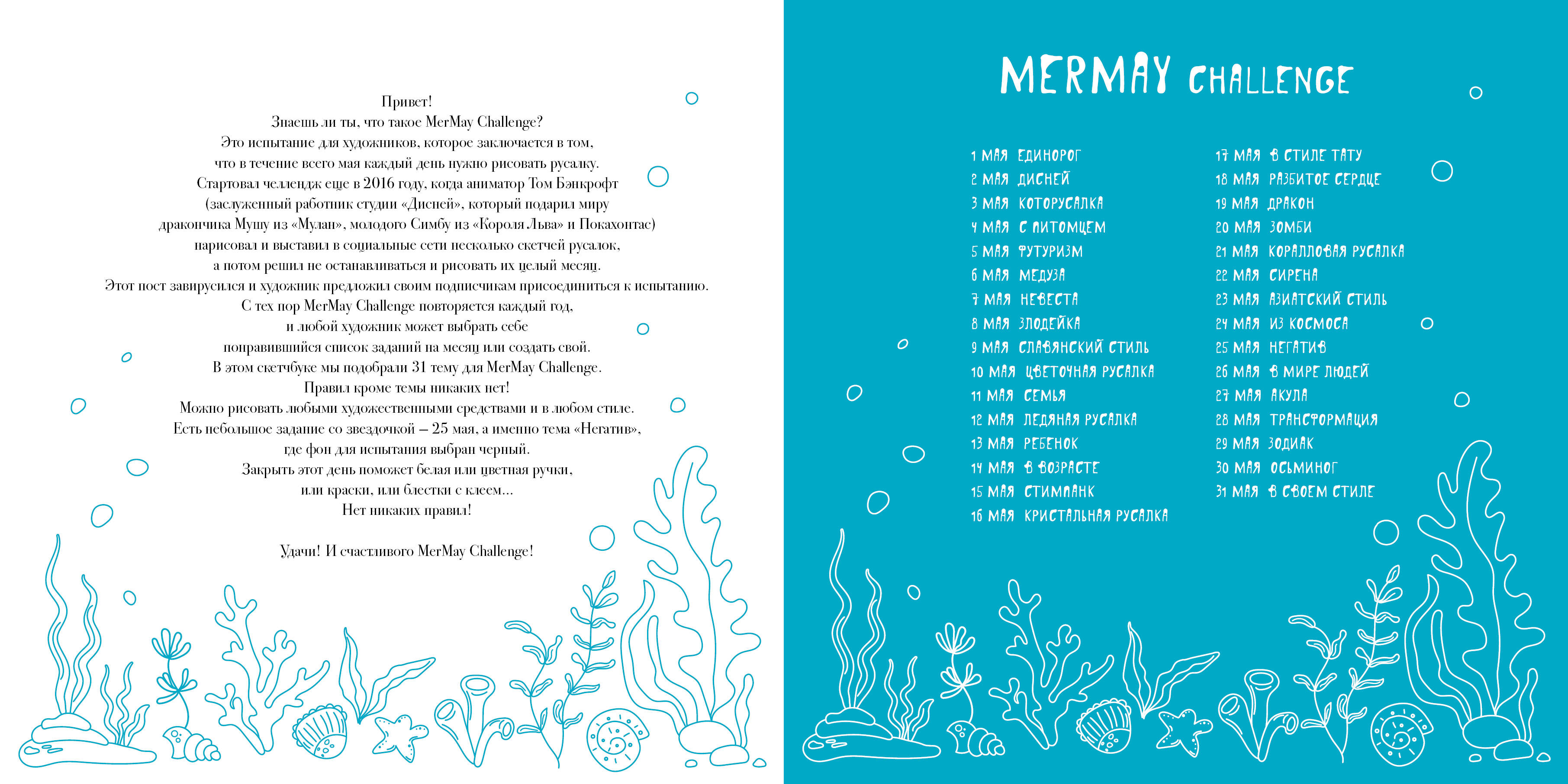 Скетчбук для художников, принимающих участие в MerMay Challenge. Его суть заключается в том, чтобы рисовать русалок в течение всего мая каждый день. В книге подготовлены темы испытаний на каждый день, а также содержатся небольшие информативные вставки. Издание выполнено на плотной офсетной бумаге 120 г и печатается с ярким голубым пантоном, который вдохновит на рисование русалок на весь май. Для широкого круга читателей.| Издательство | Издательство "АСТ" |