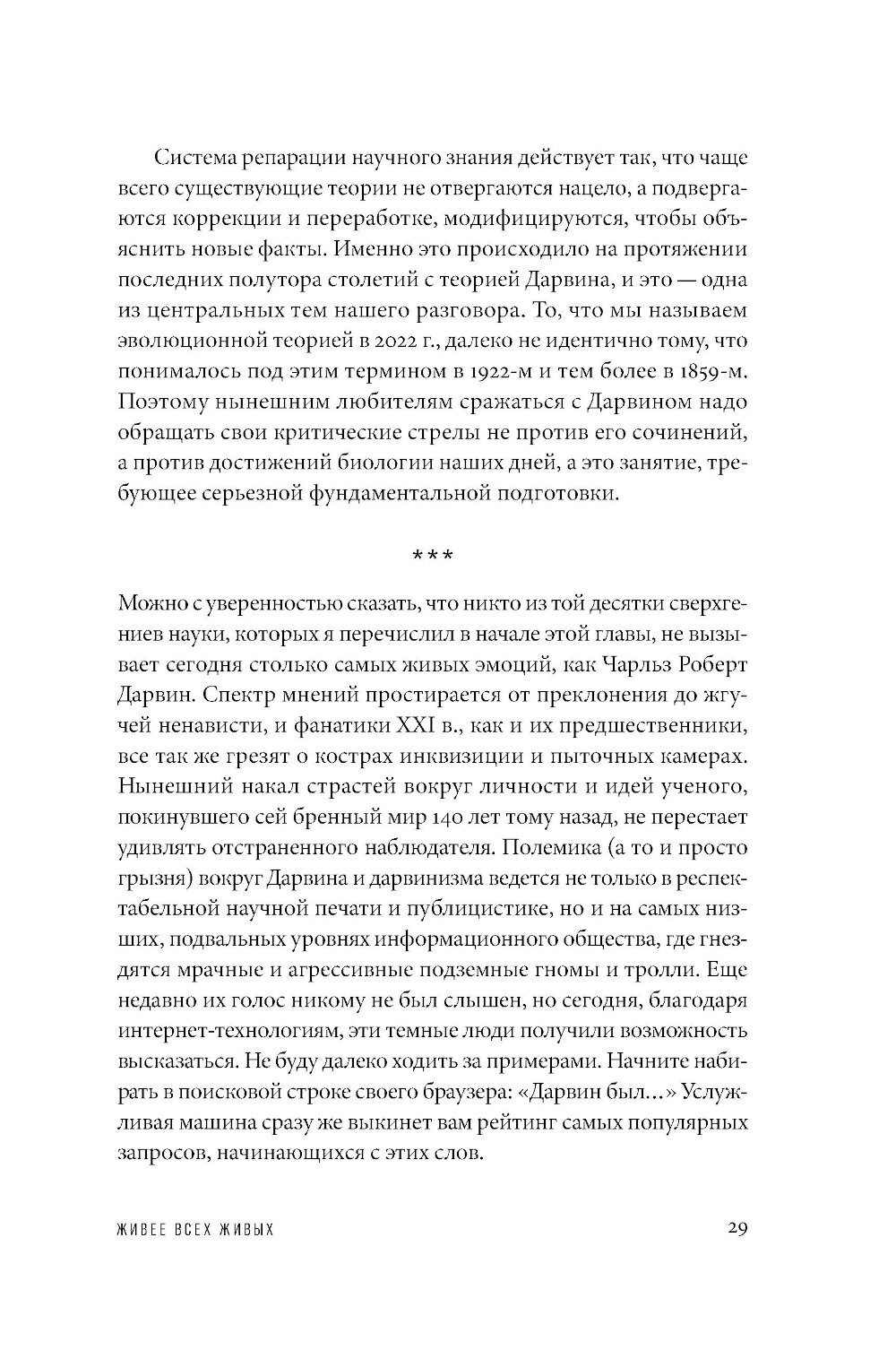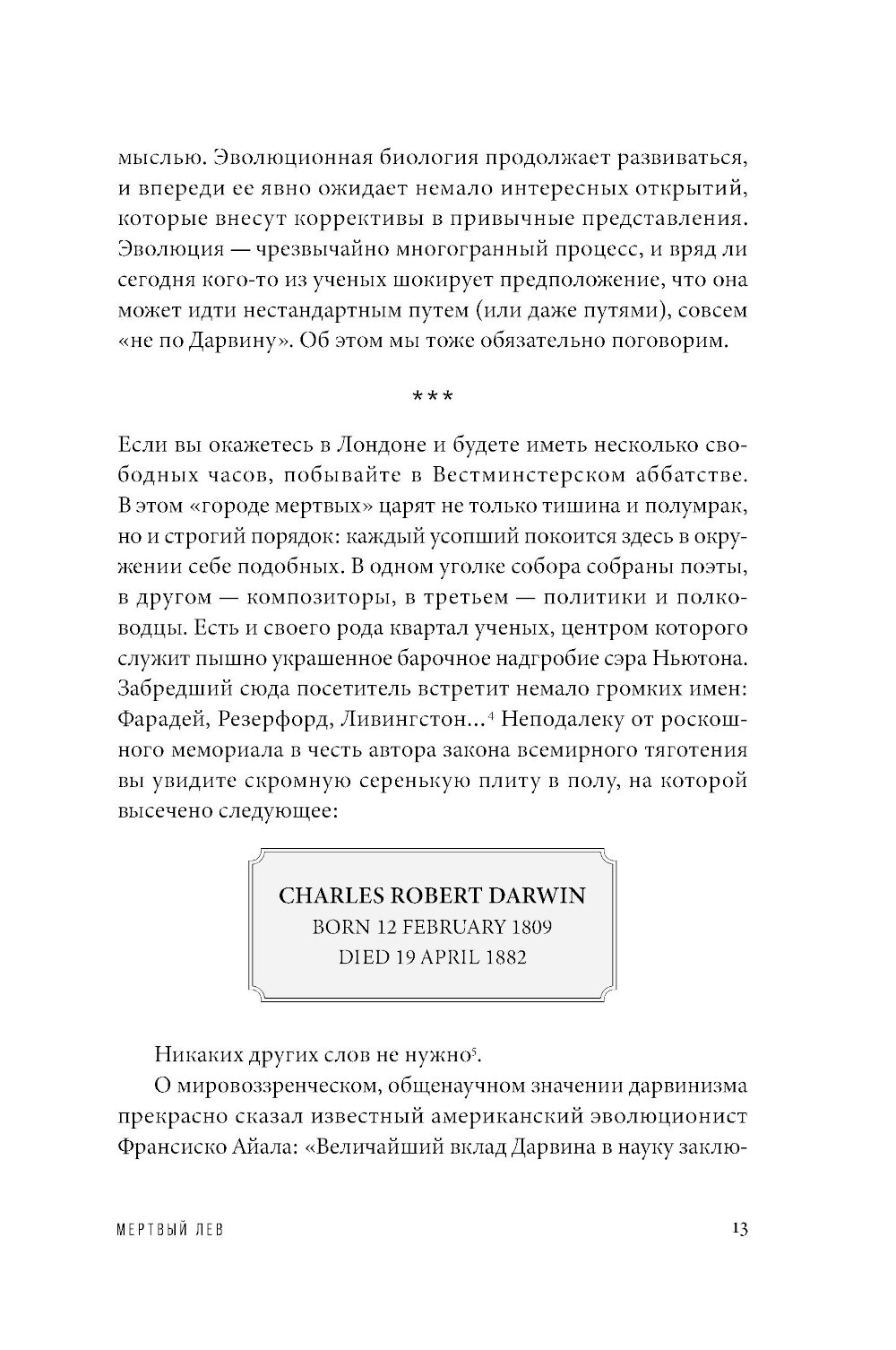 Имя Дарвина входит во все списки самых знаменитых ученых всех времен и народов, кто бы их ни составлял. Это человек, который раз и навсегда изменил представление человечества о природе, о жизни на Земле и о самом себе. Однако имя гениального исследователя, провидца и революционера в науке, продолжает тревожить умы, возбуждать гнев и ненависть, и даже сейчас, спустя почти полтора столетия после его кончины, никак не переведутся на свете охотники пинать мертвого льва. Этот образ стал яркой метафорой книги Максима Винарского, посвященной посмертной биографии Дарвина, ведь подобно тому как жизнь человека продолжается, пока его помнят, так и биография ученого продолжается, пока живо его наследие. Созданная Дарвином теория после его смерти подверглась различным интерпретациям и искажениям, порой извращенным и опасным. Его эволюционное учение использовали себе на потребу адепты самых противоположных политических движений и идеологий, совершенно далеких от проблем теоретической биологии. К счастью, высказанные им гениальные догадки получают в современной эволюционной науке дальнейшее развитие, и это главное.| Издательство | Альпина нон-фикшн |