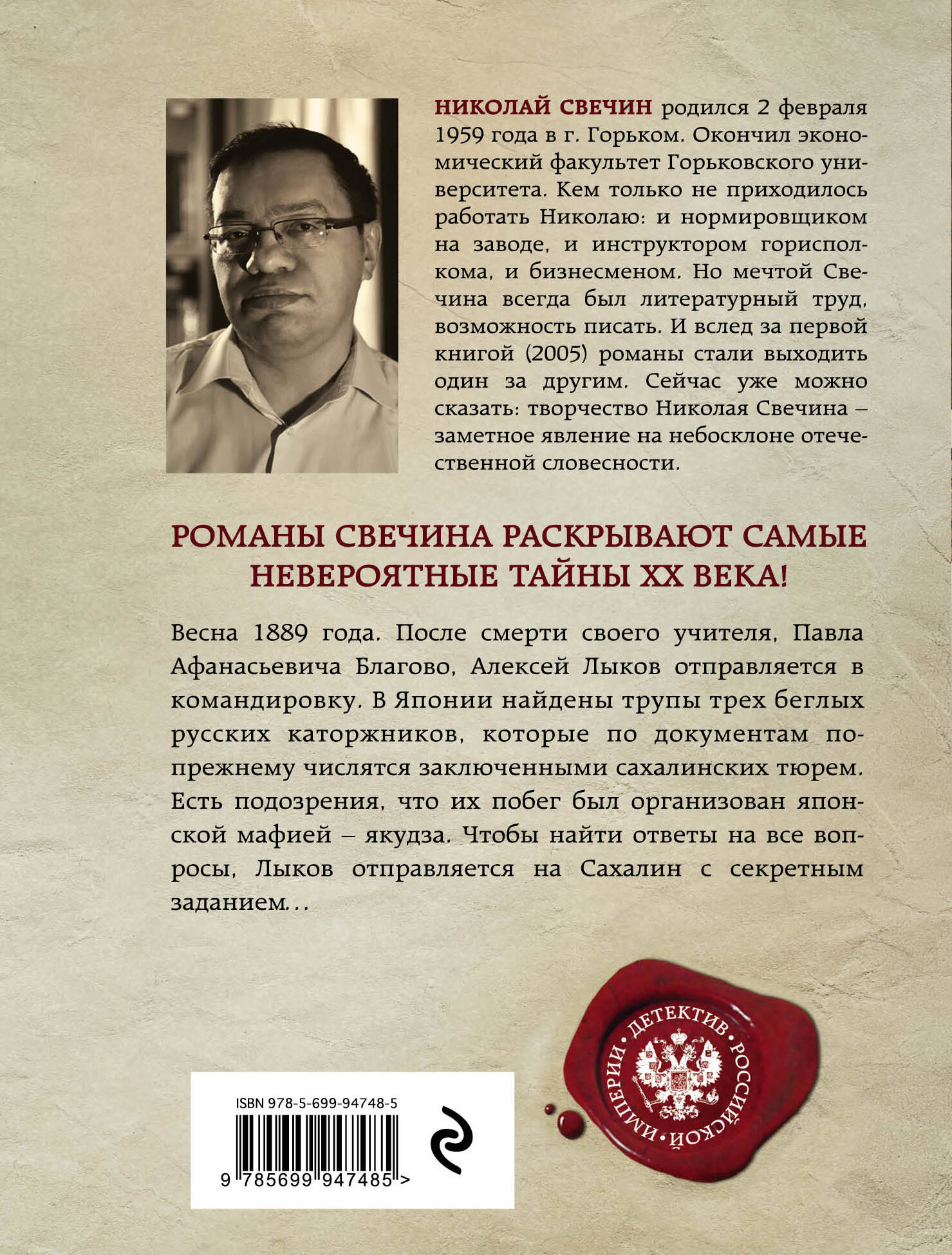 Николай Свечин - один из самых известных авторов исторических детективов, номинант премии «Русский детектив» и лидер в своей нише. Самая знаменитая серия Свечина - серия про расследования Алексея Лыкова. Она насчитывает уже более 20 романов и сборников, в каждом из которых - отдельная история преступлений, но узнаваемые герои. Эффект остросюжетного сериала. Весна 1889 года. После смерти своего учителя Павла Афанасьевича Благово Алексей Лыков отправляется в командировку. В Японии найдены трупы трех беглых русских каторжников, которые по документам по-прежнему числятся заключенными сахалинских тюрем. Есть подозрения, что их побег был организован японской мафией - якудза. Чтобы найти ответы на все вопросы, Лыков отправляется на Сахалин с секретным заданием… Удобное легкое издание малого формата, которое не претендует на место в вашем доме и не захламит книжную полку, но может быть прочитано и передано другому.| Издательство | ООО "Издательство "Эксмо" |