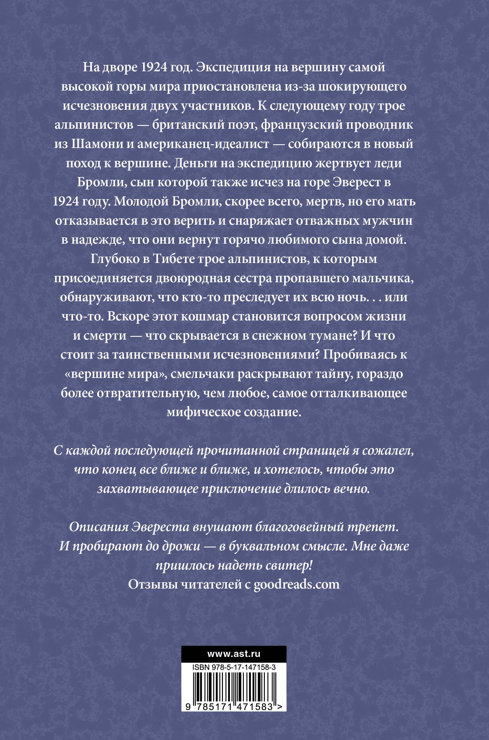 От автора культовых романов «Гиперион», «Террор» и «Друд» Дэн Симмонс - популярный современный автор, пишуший на границе фантастики, хоррора и мейнстрима. Романы писателя переведены на 20 языков и изданы в 27 странах. По мотивам романа «Террор» снят известный одноимённый сериал. На страницах романа «Мерзость» Дэн Симмонс наглядно разъяснит, чем же так привлекателен изнурительный и смертельно опасный подъём с огромным баллоном кислорода за спиной в непроглядной и холодной пустоте заснеженных горных вершин.| Издательство | ИЗДАТЕЛЬСТВО "АСТ" |