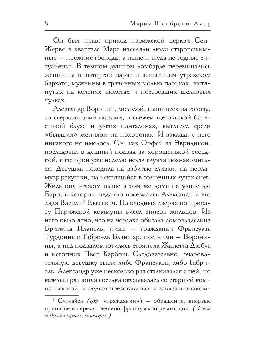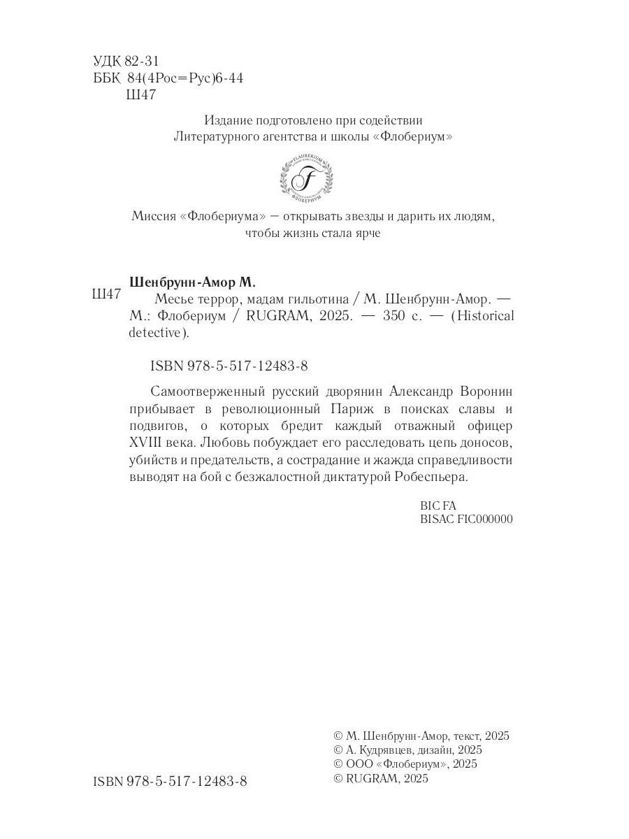 Самоотверженный русский дворянин Александр Воронин прибывает в революционный Париж в поисках славы и подвигов, о которых бредит каждый отважный офицер XVIII века. Любовь побуждает его расследовать цепь доносов, убийств и предательств, а сострадание и жажда справедливости выводят на бой с безжалостной диктатурой Робеспьера.| Издательство | Т8 RUGRAM |