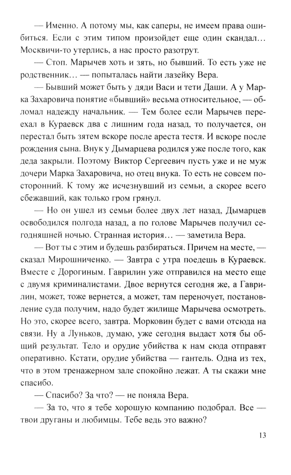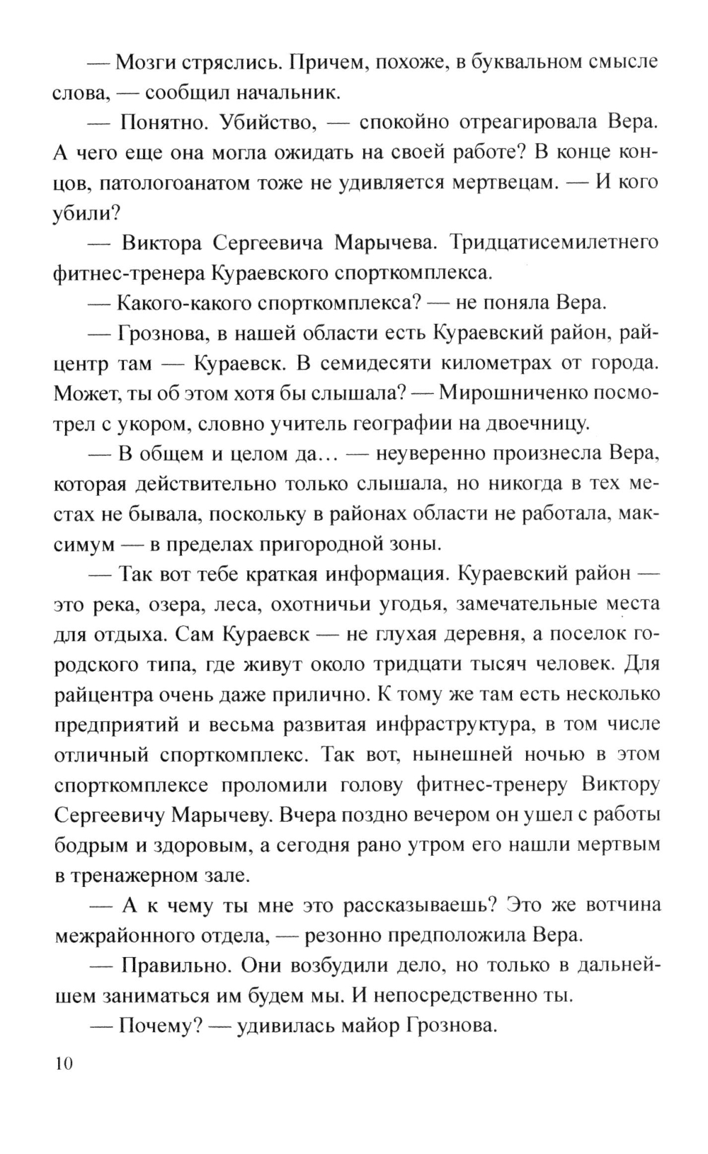 Месть одни считают страшным грехом, а другие - справедливым возмездием. Месть - главная версия, которую выдвигает следователь Вера Грознова, расследуя убийство фитнес-тренера Виктора Марычева в сельском райцентре Кураевск. И вроде сразу понятно, за что отомстили Марычеву. И даже есть главный подозреваемый. Но... То, что поначалу кажется ясным, впоследствии может оказаться весьма туманным. Особенно если учесть целый ряд странных событий: за три месяца до убийства кто-то разбил в хлам новую машину Марычева, а до того - разгромил в городе склад винного магазина и сжег новый дом местного хирурга. Есть ли связь между всеми этими происшествиями? А если есть, то кто за ними стоит?..| Издательство | Вече |