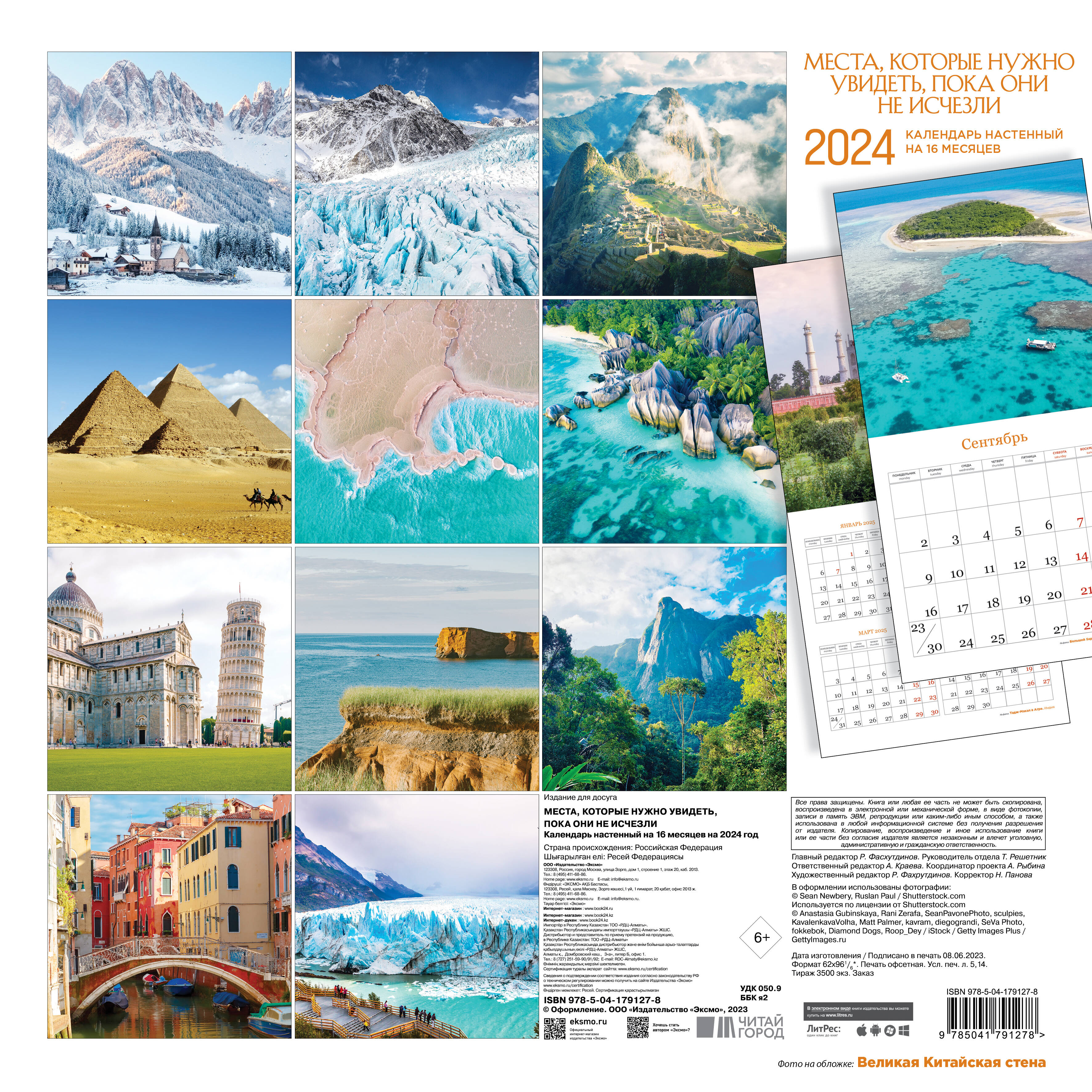 Аннотация: Места, которые нужно увидеть, пока они не исчезли. Календарь настенный на 16 месяцев на 2024 год (300х300 мм)