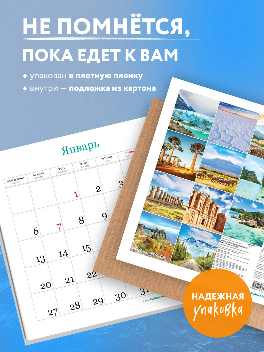 О серии: Наши настенные календари отличаются высоким качеством исполнения! Тщательно подобранные иллюстрации, напечатанные на глянцевой бумаге высочайшего качества, станут настоящим украшением дома, а в календарной сетке найдется место для ваших планов: большие клетки позволят делать записи и организовать свой год! В календаре также отмечены все государственные праздники. В серии настенных календарей издательства «ЭКСМО» каждый найдет тему по вкусу: великие художники, великолепные подборки с самыми знаменитыми произведениями искусства, легендарные кинематографические саги и игры, главные книжные авторы и бестселлеры, фотографии и иллюстрации любимых животных и многое-многое другое! О календаре: В календаре собраны красочные фотографии мест нашей планеты, которые могут в скором времени исчезнуть с лица Земли! Солончак Уюни в Боливии, роскошный Тадж-Махал в Индии, древний город Петра в Иордании, ледники Патагонии в Аргентине - все это и многое другое ждет вас под обложкой календаря! А еще в календарь включен дополнительный разворот с первыми четырьмя месяцами 2026 года! Для кого: Красочные фотографии будут долго хранить в себе магию и красоту мест, которые могут вскоре исчезнуть. Технические параметры: - Тип календаря - настенный перекидной. - Год - 2025. - Календарная сетка - с разбивкой по месяцам. - Вид скрепления - скрепка. - Ширина - 30 см. - Высота - 30 см. - Внутренний блок - мелованная бумага 150 г/м2. - Подложка - плотный гофрокартон для поддержания формы. - Индивидуальная упаковка в плотный целлофановый пакет.| Издательство | ООО "Издательство "Эксмо" |